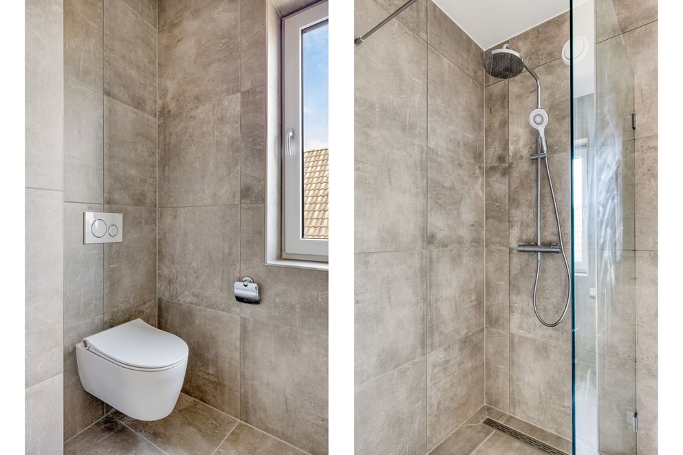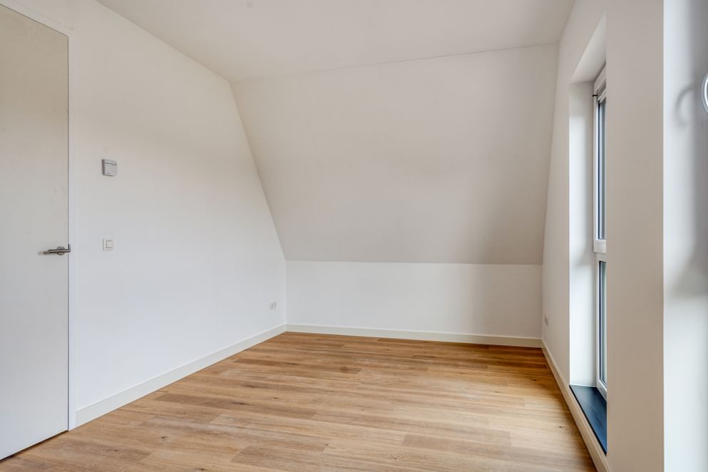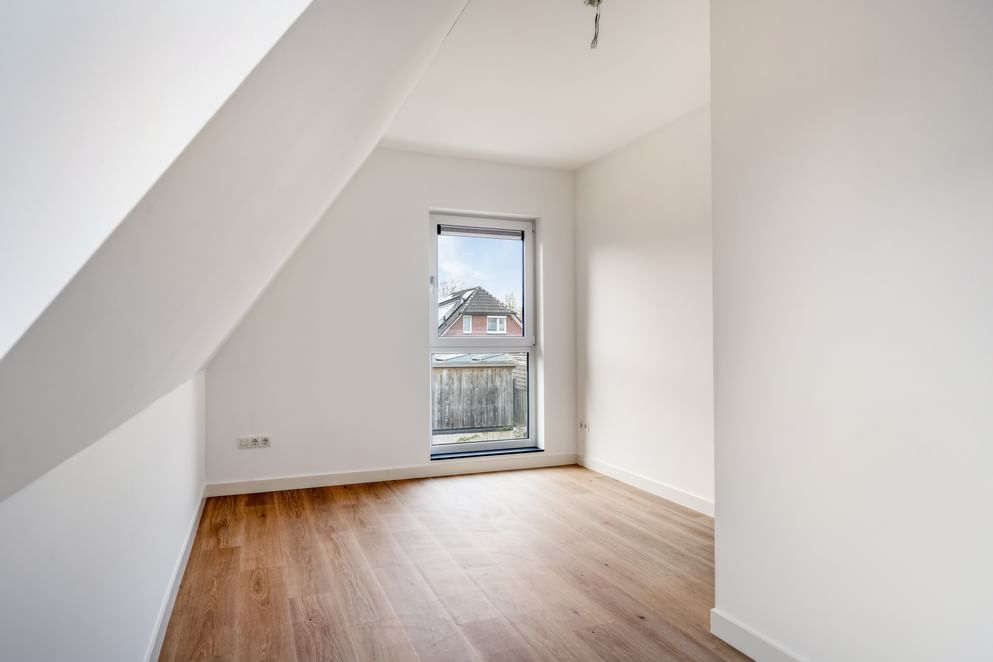 Overloop, 3 slaapkamers allen van een goede afmeting, een wasruimte en een modern afgewerkte badkamer. Deze smaakvolle badkamer is uitgerust met een inloopdouche en glazen wand, een badkamermeubel met dubbele wastafel, toilet en designradiator. De badkamer is door zijn stijlvolle en eigentijdse afwerking een lust voor het oog. Tevens bevindt zich op deze verdieping een separate was-/techniekruimte met opstelplaats voor de luchtwarmtepomp en aansluitingen voor de wasmachine en droger. De dakkapel op de woning biedt maximaal ruimte en licht.