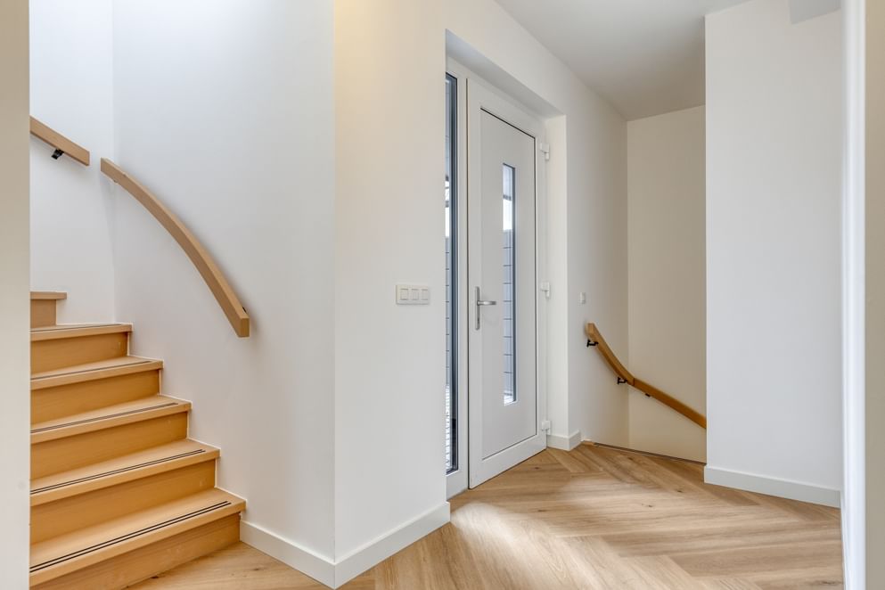 Deze woning wordt nagenoeg instapklaar opgeleverd. Je hoeft alleen nog je verhuisdozen te vullen en de keuken uit te zoeken. De begane grond is voorzien van een stijlvolle PVC visgraatvloer, terwijl op de verdieping een rechte PVC plankvloer ligt. Zowel beneden als boven zijn de plinten al netjes afgewerkt. De muren zijn strak gestuct, voorzien van glasvliesbehang en geschilderd, waardoor de woning direct een verzorgde en eigentijdse uitstraling heeft.