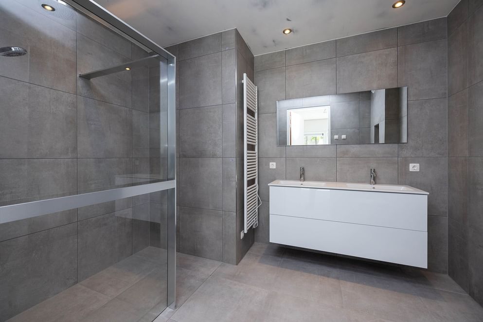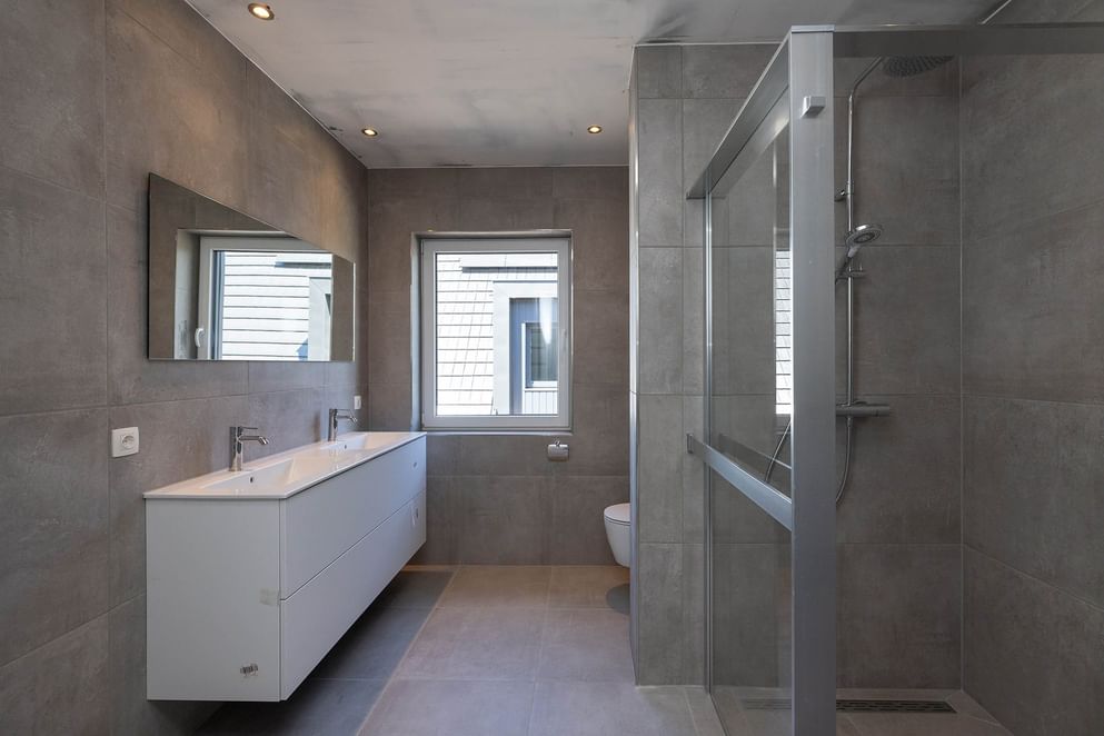 Via de overloop heb je toegang tot drie slaapkamers en een modern afgewerkte badkamer. Deze smaakvolle badkamer is uitgerust met een inloopdouche met regendouche en glazen wand, een badkamermeubel met dubbele wastafel, een toilet en designradiator. De badkamer is door zijn stijlvolle en eigentijdse afwerking een lust voor het oog. De 2 dakkapellen op de woning bieden maximaal ruimte en licht.