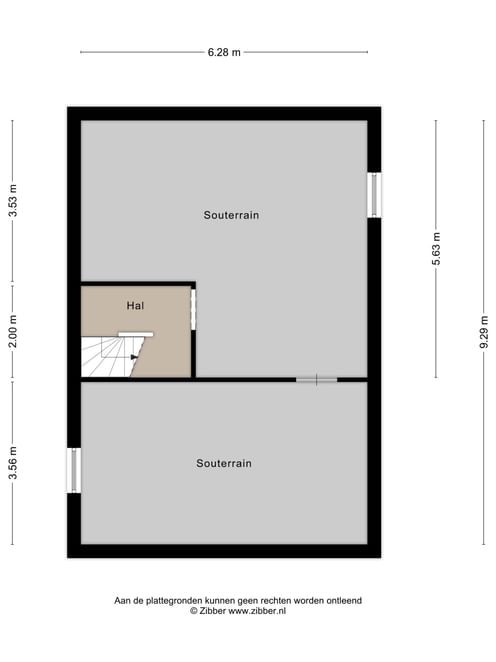 Het souterrain is bereikbaar via de hal op de begane grond en bestaat uit 2 separate (hobby) ruimten.