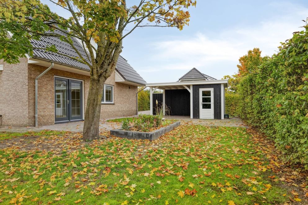 Entree/hal, toilet met fonteintje, meterkast, trapopgang naar de eerste verdieping en toegang tot het souterrain. Ruime woonkamer met grote raampartijen rondom en openslaande tuindeuren richting de tuin. De open keuken is uitgerust met diverse inbouwapparatuur zoals een 4-pits inductie kookplaat, afzuigkap, oven, koelkast en vaatwasser. Via de keuken toegang tot de handige bijkeuken met opstelling voor de wasmachine en droger, c.v. opstelling. Naast het woonhuis bevinden zich nog een handige houten berging met overkapping.