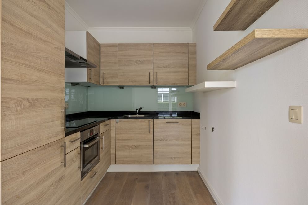 Je betreedt het appartement via de entree die beschikt over een een toilet met fontein, meterkast en trapopgang naar het souterrain en de eerste verdieping. Vanuit hier krijg je onder andere toegang tot de nette inbouwkeuken die voorzien is van een vaatwasser, combi oven/magnetron, koelkast, vriezer, keramische kookplaat én de sfeervolle tuingerichte woonkamer. Deze is voorzien van een erker met toegang door middel van openslaande tuindeuren naar de overkapping.