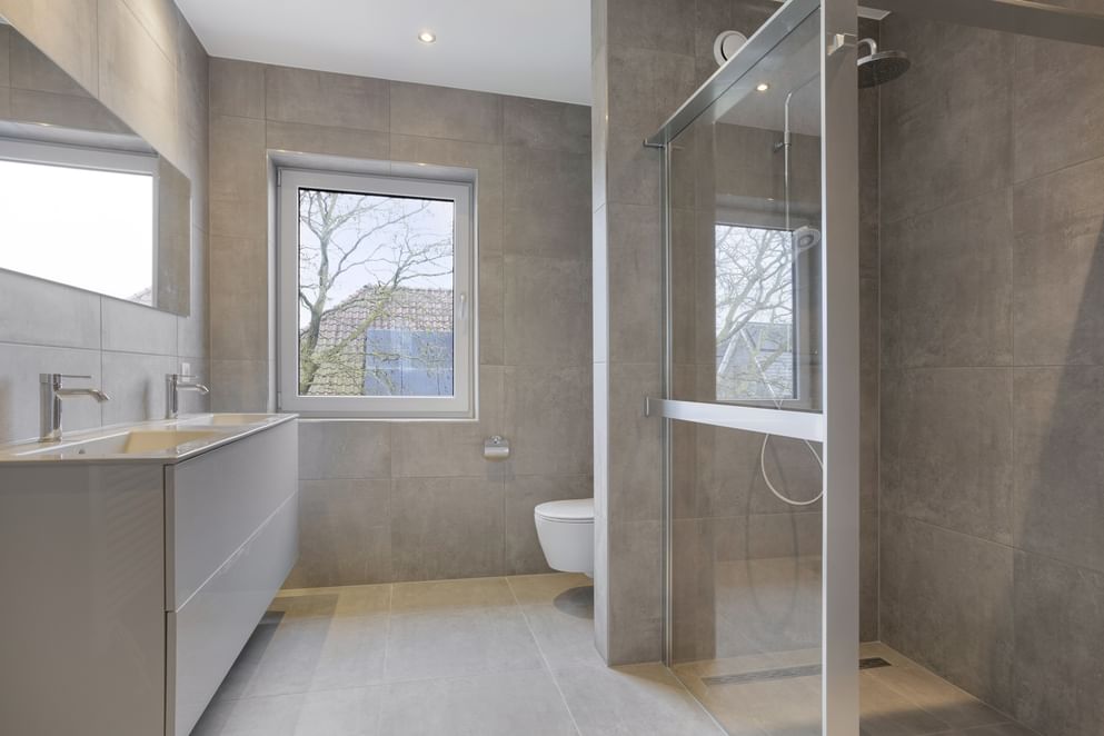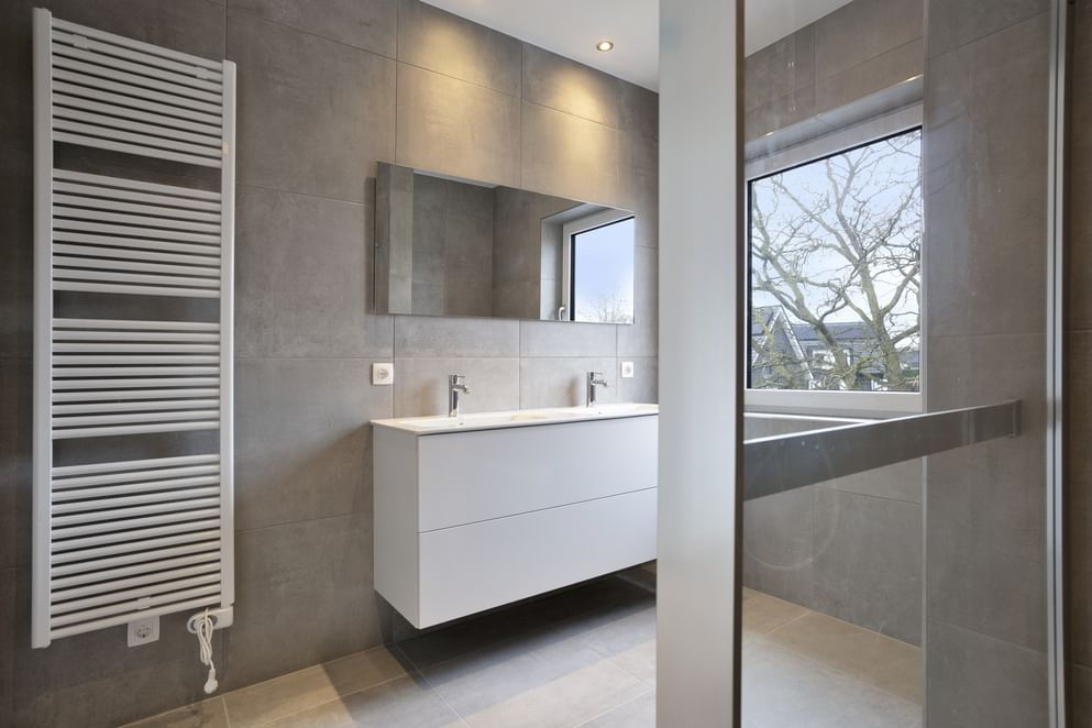 Overloop, 3 slaapkamers allen van een goede afmeting, een wasruimte en een modern afgewerkte badkamer. Deze smaakvolle badkamer is uitgerust met een inloopdouche en glazen wand, een badkamermeubel met dubbele wastafel, toilet en designradiator. De badkamer is door zijn stijlvolle en eigentijdse afwerking een lust voor het oog. Tevens bevindt zich op deze verdieping een separate was-/techniekruimte met opstelplaats voor de luchtwarmtepomp en aansluitingen voor de wasmachine en droger. De dakkapel op de woning biedt maximaal ruimte en licht.