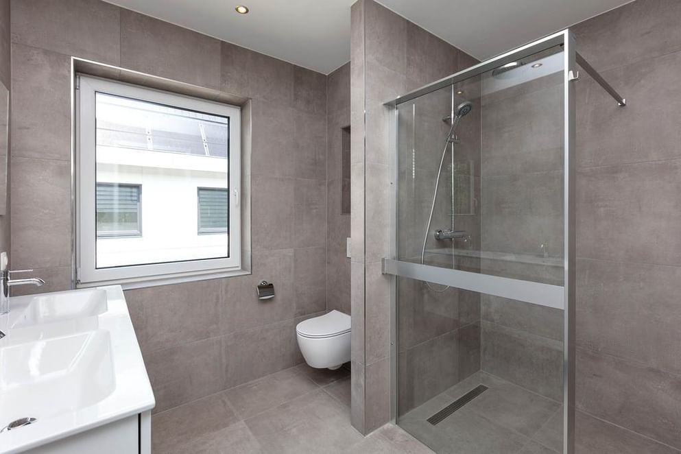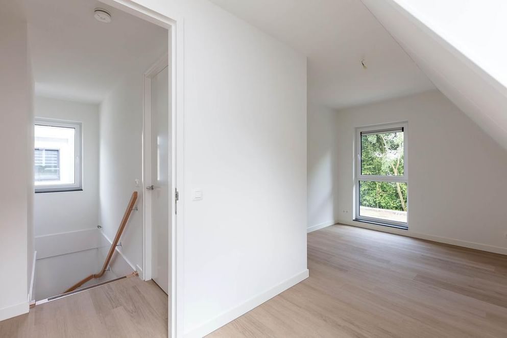 Overloop, 3 slaapkamers allen van een goede afmeting, een wasruimte en een modern afgewerkte badkamer met dakkapel. Deze smaakvolle badkamer is uitgerust met een inloopdouche met regendouche en glazen deur, een badkamermeubel met dubbele wastafels en een zwevend toilet. De badkamer is door zijn stijlvolle en eigentijdse afwerking een lust voor het oog. Tevens bevindt zich op deze verdieping een separate was-/techniekruimte met opstelplaats voor de luchtwarmtepomp en met aansluitingen voor uw wasmachine en droger.