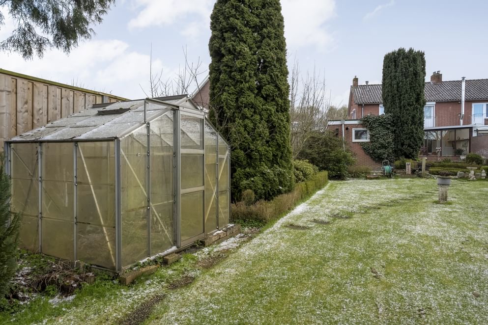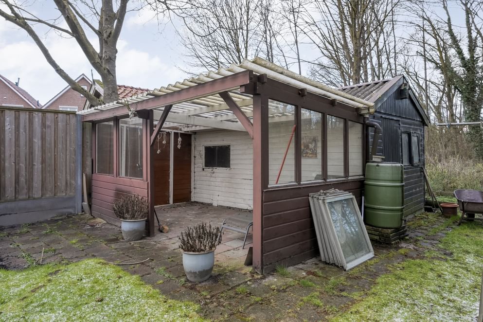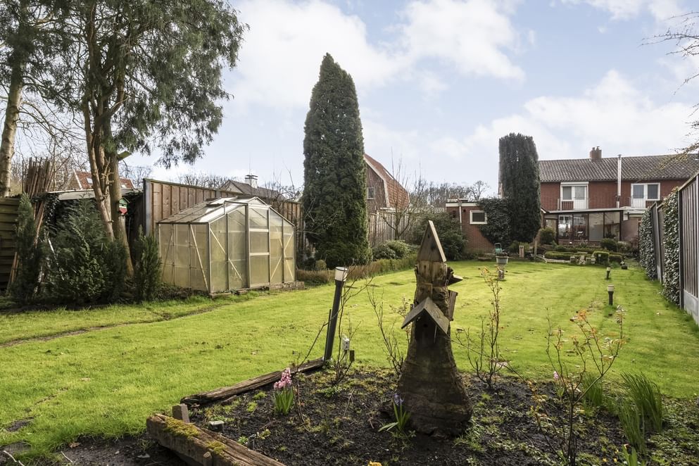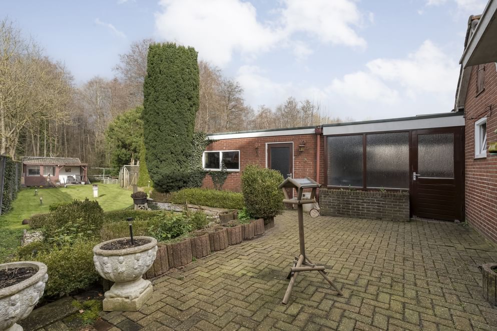 De achtertuin is een absoluut pluspunt: ruim, zonnig en direct grenzend aan een bos. Hier ervaart u optimale privacy en een vrij gevoel. De tuin beschikt over een houten schuur met overkapping en een terras – perfect voor zonliefhebbers en lange zomeravonden. Aan de voorzijde vindt u een onderhoudsvriendelijke tuin en ruime parkeergelegenheid op eigen terrein, onder de carport. Achterin de tuin bevindt zich een schuur, welke perfect kan worden omgetoverd tot een mooie tuinkamer.