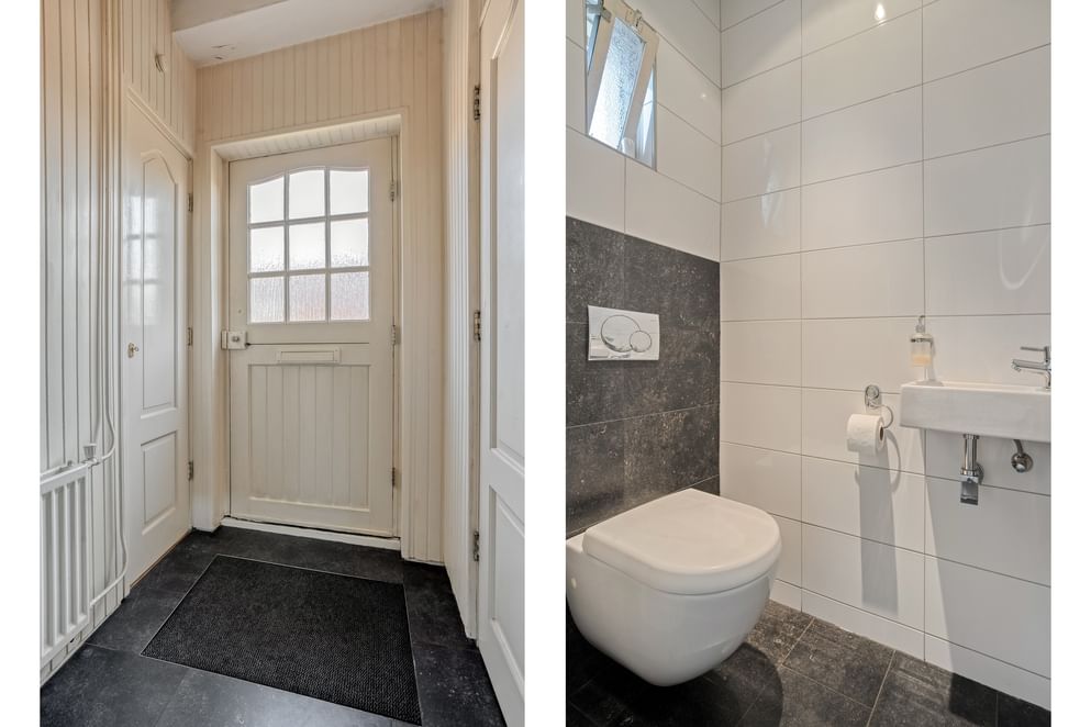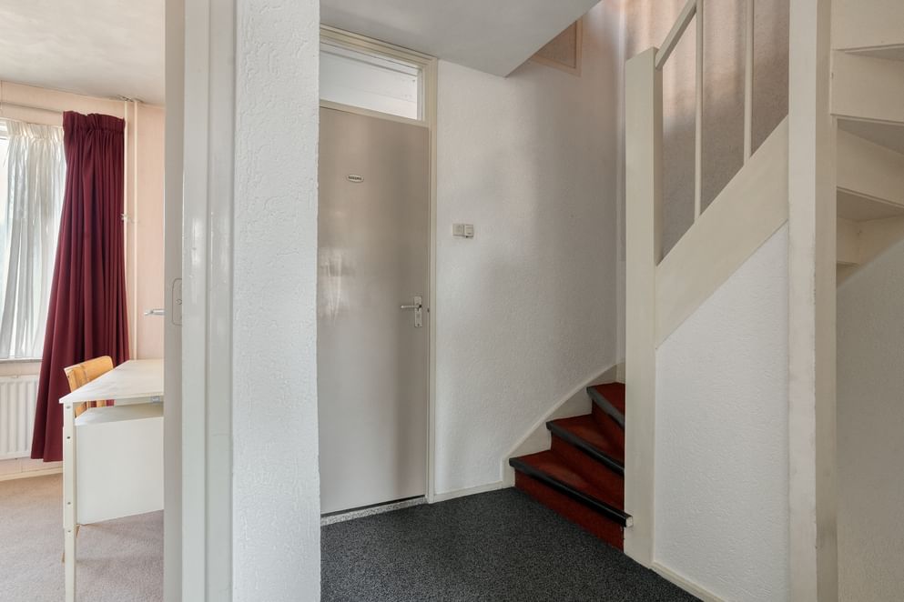 Via de voordeur kom je binnen in de entree van de woning, waar zich het toilet, de meterkast en de trapopgang naar de eerste verdieping bevinden. Ook is hier een praktische trapkast aanwezig, wat zorgt voor extra bergruimte. Vanuit de hal loop je door naar de keuken, die in 2020 is vernieuwd en is voorzien van de nodige inbouwapparatuur en functionele gemakken. Aansluitend bevindt zich de woonkamer, die dankzij de grote raampartijen aan zowel de voor- als achterzijde geniet van een prettige lichtinval. Via de keuken heb je toegang tot de achtertuin, hierdoor zijn binnen en buiten op een prettige manier met elkaar verbonden.
