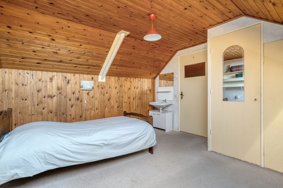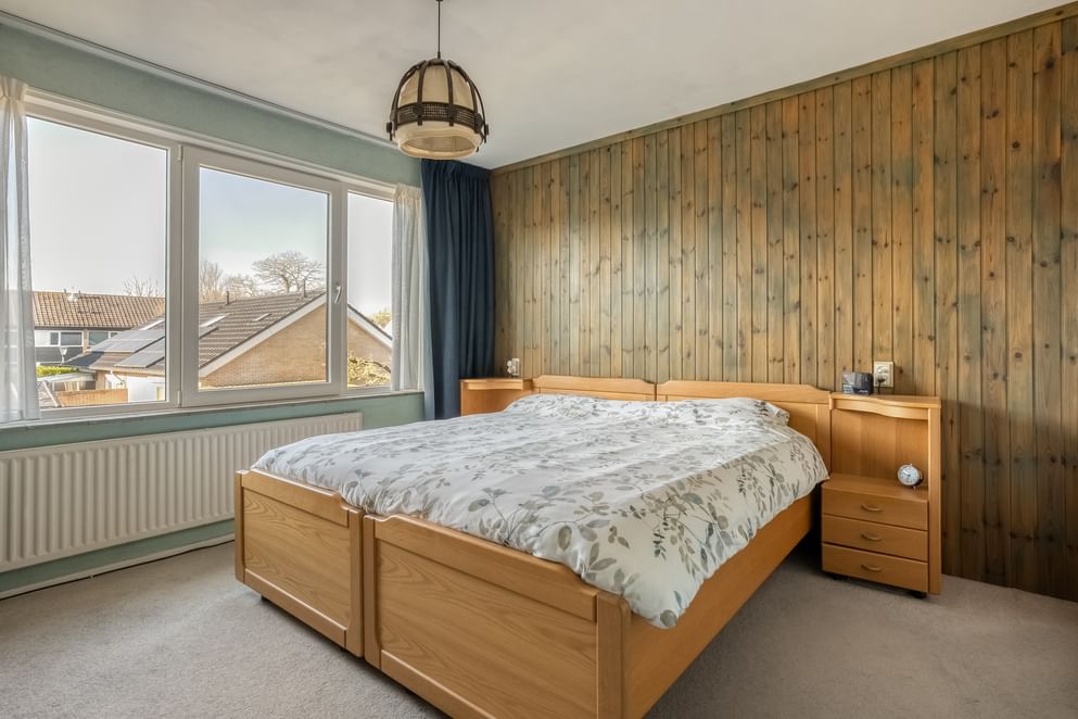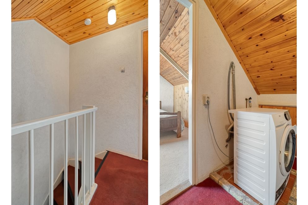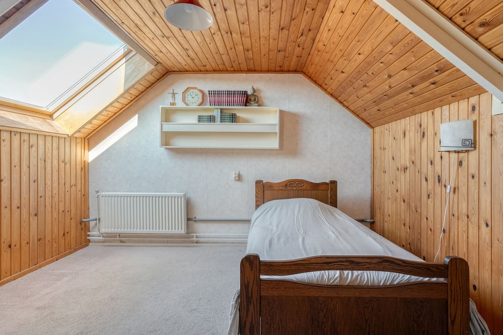 Via de vaste trap bereik je de tweede verdieping. Hier kom je op een overloop met de aansluitingen voor de wasmachine. Op deze verdieping bevindt zich tevens een vierde slaapkamer. Deze kamer is voorzien van een dakraam, wat zorgt voor prettig daglicht en vaste kasten. Daarnaast is er achter de knieschotten extra bergruimte aanwezig, waardoor de ruimte optimaal wordt benut. Aan de ander zijde van deze verdieping is een royale berging te vinden, waar zich de opstelling voor de C.V.-ketel bevindt en de aansluiting voor de droger.