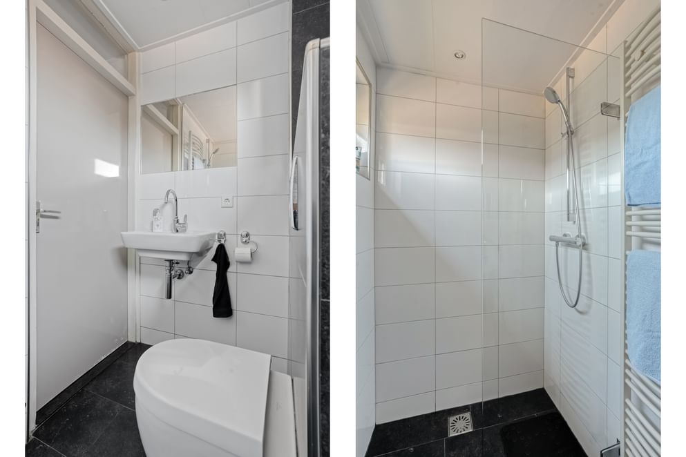 Op de eerste verdieping bevindt zich een praktische overloop die toegang biedt tot drie slaapkamers en de badkamer. Twee slaapkamers aan de rechterzijde zijn uitgerust met handige vaste kasten, wat extra opbergruimte biedt. Daarnaast is er op de overloop ook een vaste kast voor nog meer opbergruimte. De slaapkamer aan de linker achterzijde biedt veel mogelijkheden, bijvoorbeeld als thuiswerkplek. De beide slaapkamers aan de achterzijde zijn bovendien voorzien van elektrische rolluiken, voor extra gemak en comfort. De vernieuwde badkamer (2018) is voorzien van een moderne inloopdouche, een wandcloset en een wastafel.