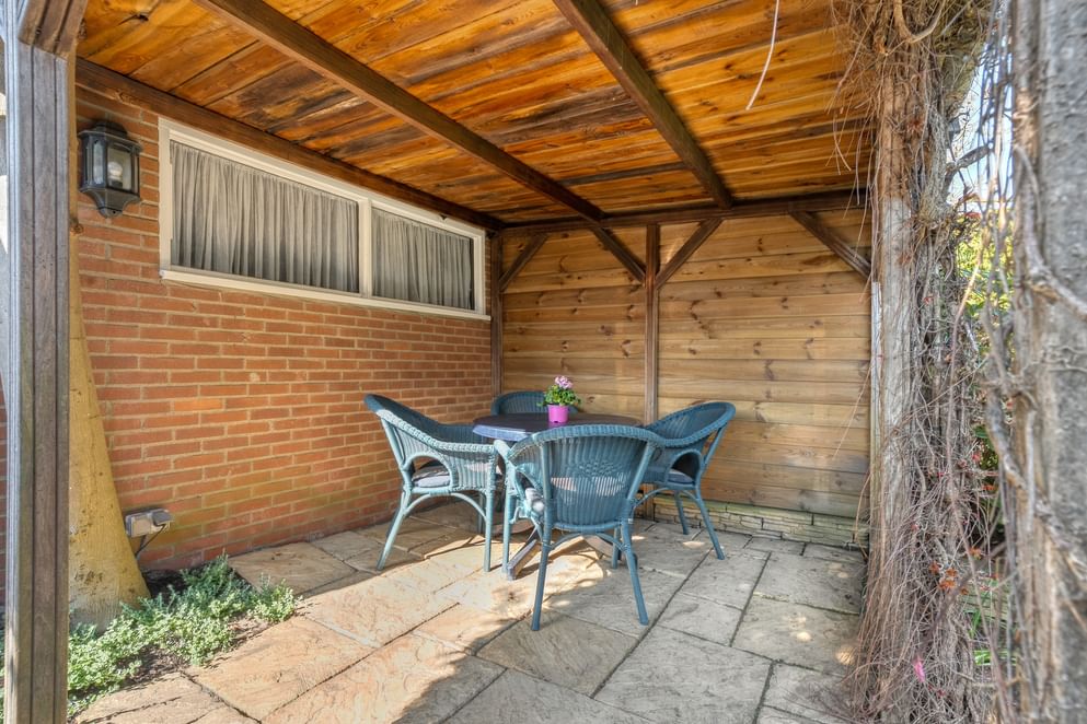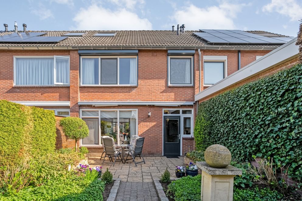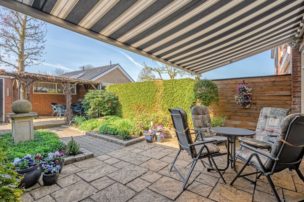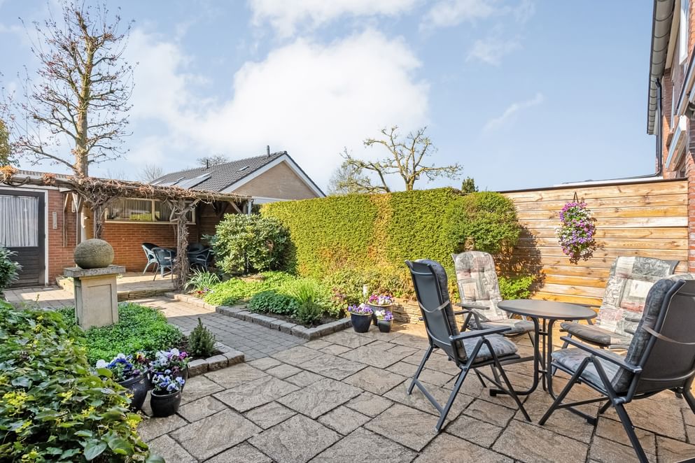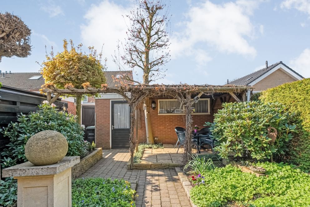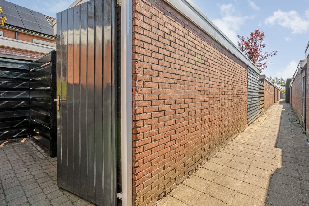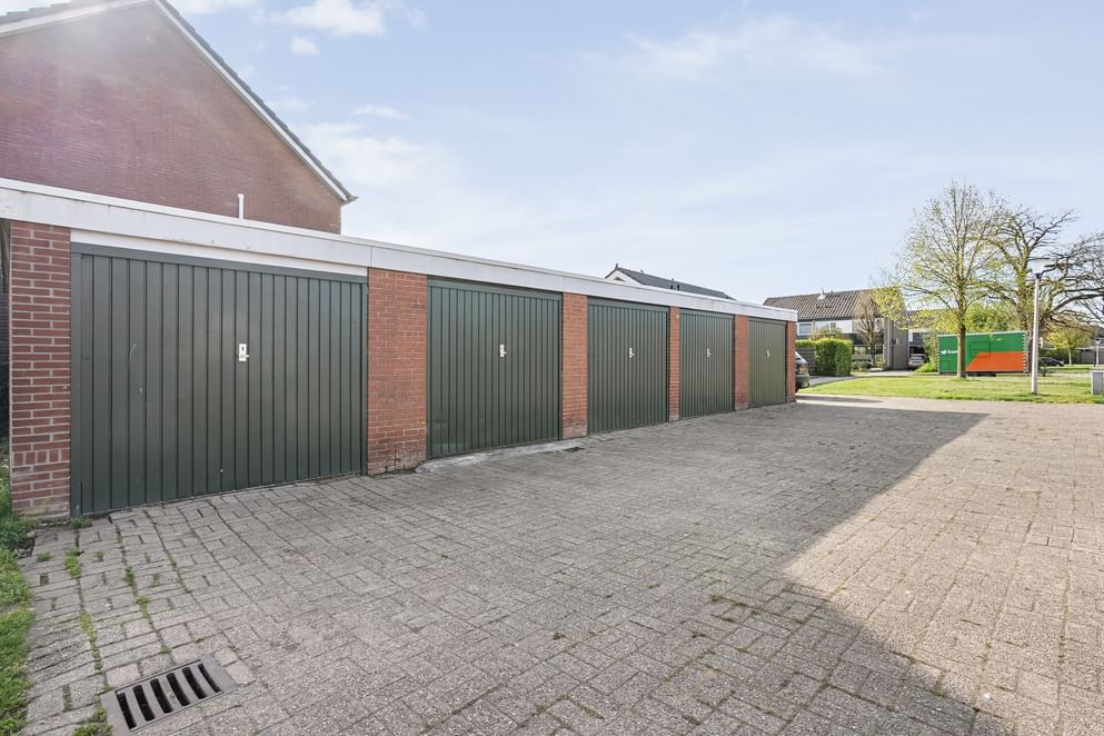 De zonnige achtertuin, op het zuidwesten gelegen, is bereikbaar via de keuken en is verzorgd en groen aangelegd. In de tuin zijn meerdere zitplekken gecreëerd, waardoor er op verschillende momenten van de dag een fijne plek is om buiten te zitten. Achterin de tuin bevindt zich een veranda, waar je beschut en comfortabel kunt genieten van het buitenleven. Daarnaast is er een halfsteens, vrijstaand schuurtje aanwezig, voorzien van elektra en daarmee geschikt als praktische ruimte voor het opbergen van o.a. de tuinspullen en de fietsen. De woning beschikt tevens over een separate garagebox voorzien van elektra en water, die ook kan dienen als extra bergruimte of parkeergelegenheid.