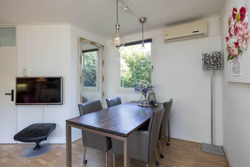 Bij binnenkomst betreed je de hal, die toegang biedt tot een slaapkamer, toiletruimte met toilet en fontein, en een ruime woonkamer. De woonkamer beschikt over veel natuurlijk lichtinval. Ook heeft de woonkamer een airconditioning. Ideaal om het in warme zomermaanden aangenaam koel te houden. De L-vormige open keuken is voorzien van een 6-pits gaskookplaat met afzuigkap, een vaatwasser, een Miele koel-vriescombinatie en een combimagnetron. De tweede slaapkamer heeft een aangrenzende moderne badkamer, die is voorzien van een toilet, inloopdouche en badkamermeubel. Via buitenom is de inpandige bergruimte bereikbaar, die voorzien is van witgoedaansluitingen en extra bergruimte. Via een vlizotrap in de bergruimte is een ruime bergzolder te bereiken. De bungalow heeft een snelle vaste TV en (breedband) internetverbinding (Ziggo).