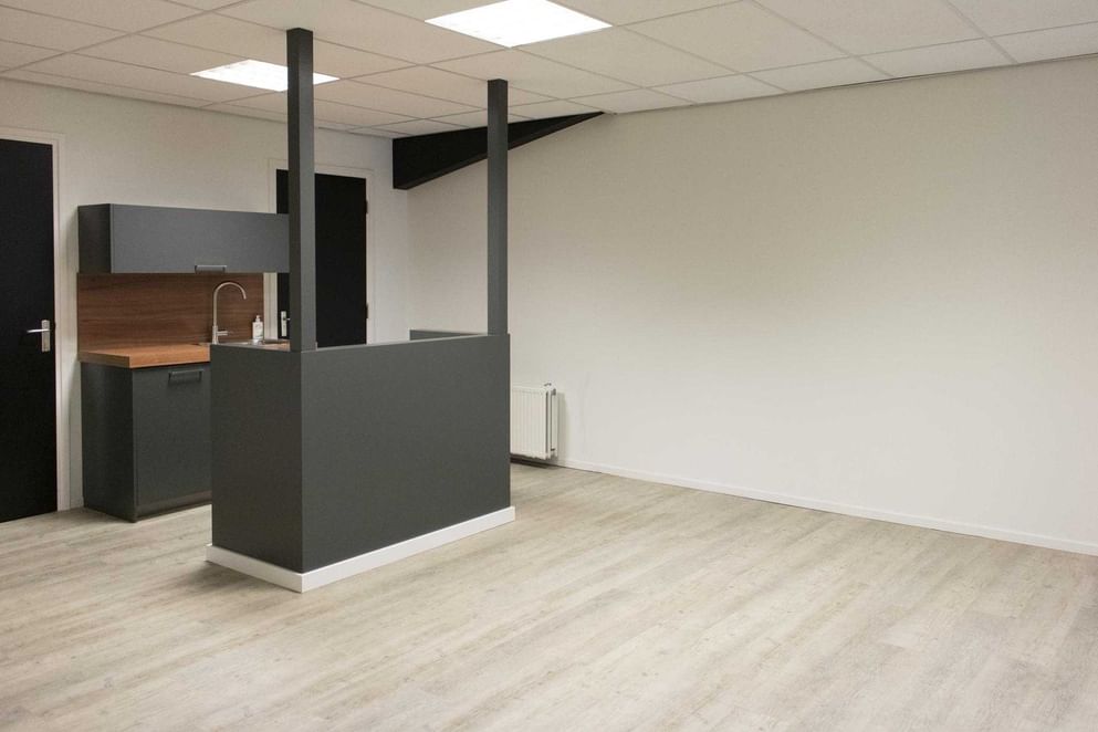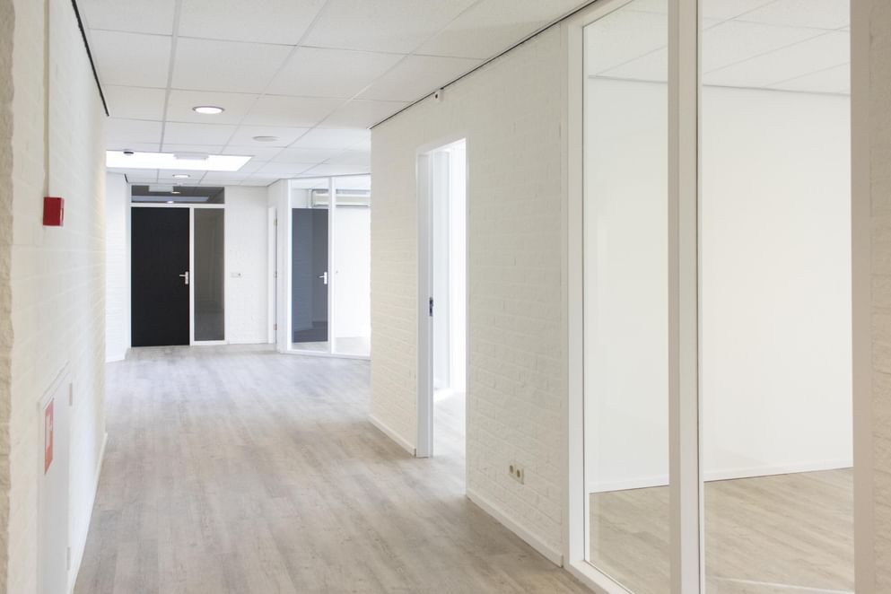 Gemeenschappelijke overloop met doorloop naar de te verhuren kantoorruimte. Deze ruimte bestaat uit een hal met toegang tot de diverse kantoren. De ruimten zijn representatief afgewerkt met een PVC vloer en beschikken o.a. over een systeemplafond met lichtarmaturen. Daarnaast beschikt u over ruime inpandige spreekkamer, een fraaie kantine met een net keukenblok v.v. een vaatwasser en met twee separate toiletruimten en over ruim voldoende archiefruimte.