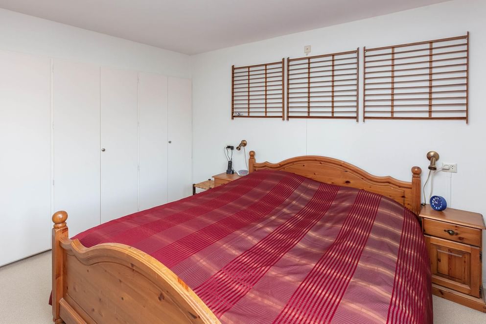 De overloop geeft toegang tot 3 slaapkamers van prima omvang en de badkamer. De 2 ruimere slaapkamers beschikken beide over vaste kasten, en alle kamers hebben elektrische rolluiken. De geheel betegelde badkamer voorziet in een douchecabine met jetstreams, wastafel met badkamermeubel, wandcloset, elektrische afzuiging en daglichttoegang.
