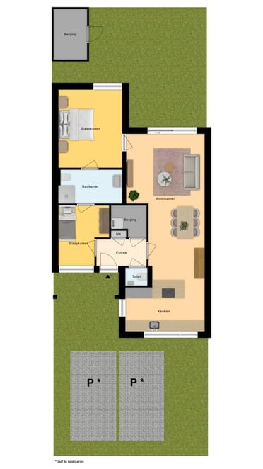 - 2 eigen parkeerplaatsen en een berging in de tuin