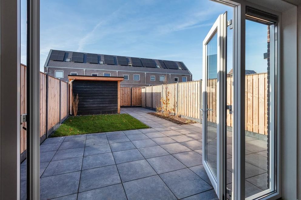 De achtertuin is gesitueerd op het westen. Hierdoor kun je lang genieten van de avondzon. Tevens is deze achtertuin omheind middels een schutting van betonpalen en houten schuttingdelen en v.v. een ruime vrijstaande schuur (4 x 2,5 m). Het geheel is gelegen aan een rustige straat in de nieuwste wijk van Emmen, Delftlanden. De wijk is gunstig gelegen ten opzichte van uitvalswegen (Rondweg, A37 en N34) en beschikt over een 2-tal basisscholen en een kinderopvang. Het centrum van Emmen is op enkele autominuten gelegen en je kan heerlijk onthaasten in het naastgelegen Noordbargerbos.