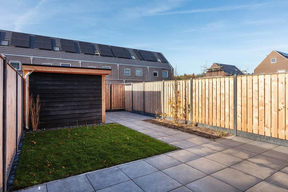 - De achtertuin is afgesloten middels een schutting (betonpalen met houten schuttingdelen)