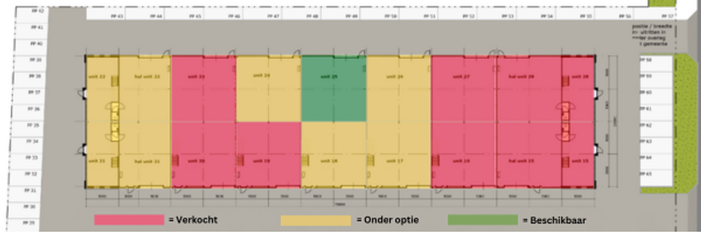 - De binnenwand tussen de bedrijfsunits wordt uitgevoerd in Ytong / cellenbeton, niet afgevuld;
