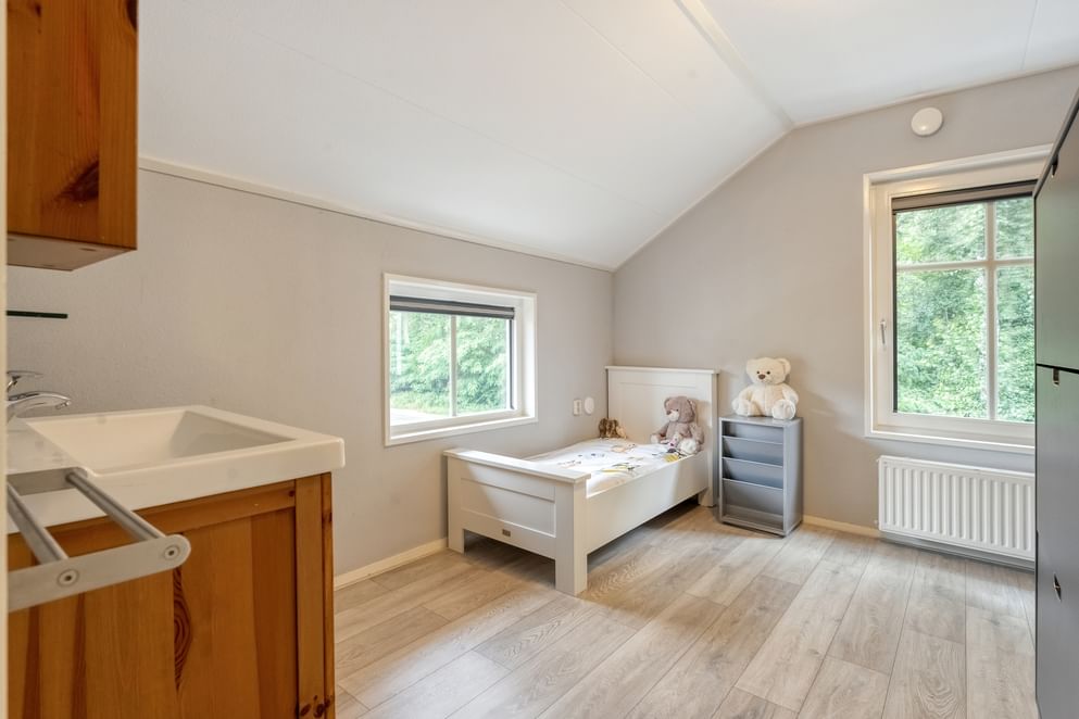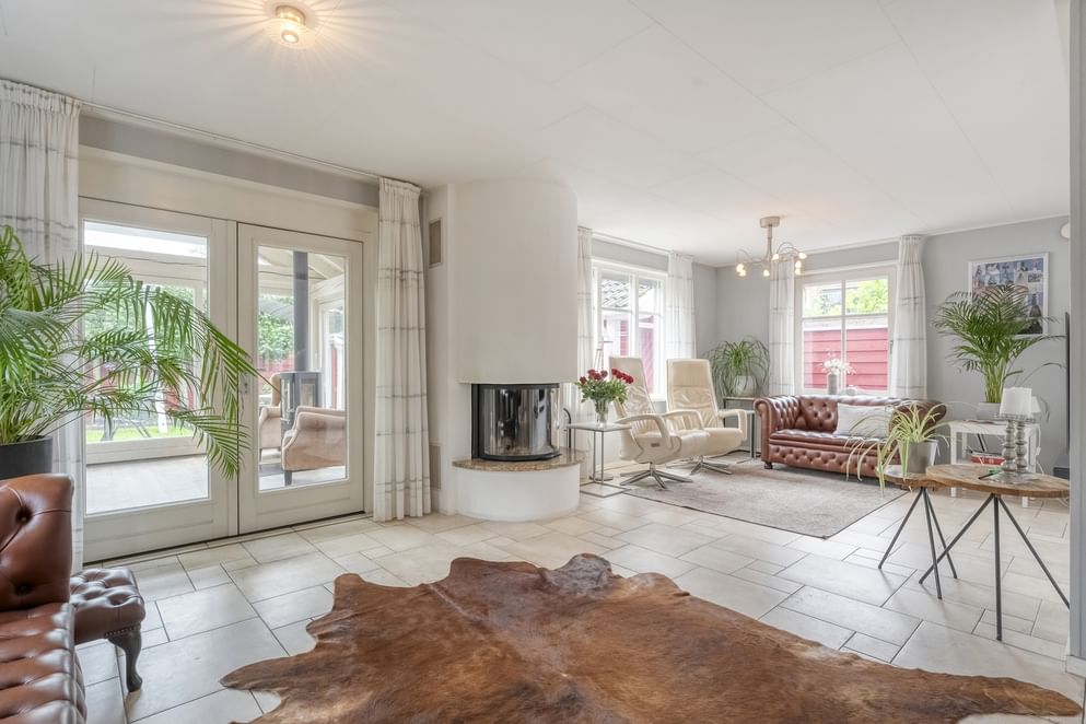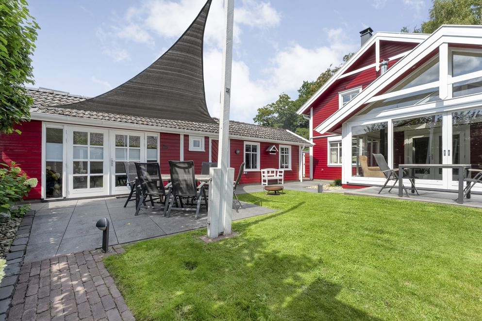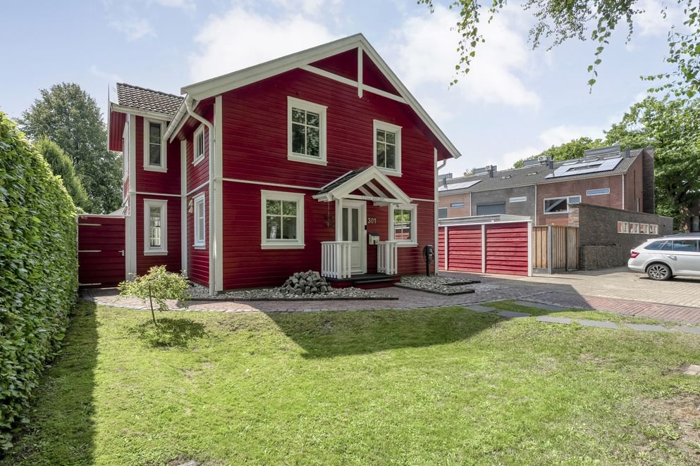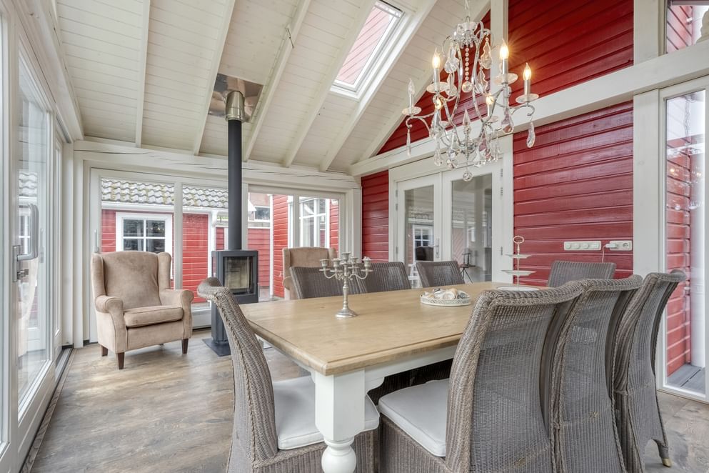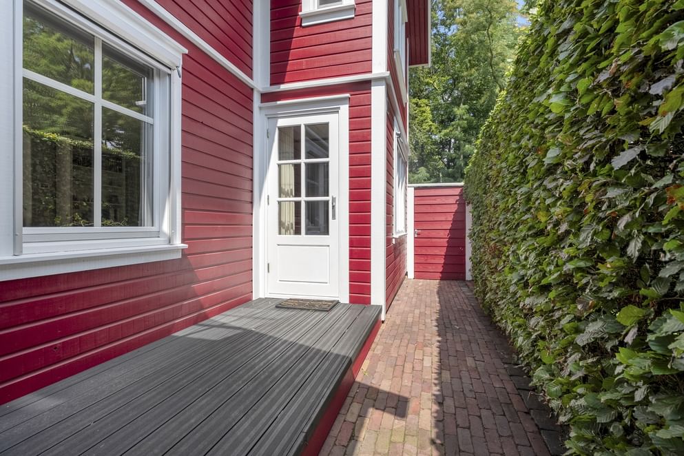 De rode houten gevel met witte accenten en symmetrische lijnen geven het huis direct een warme, charmante uitstraling die zich duidelijk onderscheidt van de omliggende bebouwing. Op de oprit is ruimte voor meerdere auto's en bevindt zich bovendien een laadpaal, ideaal voor elektrisch rijden. De woning is daarnaast uitgerust met 32 zonnepanelen en beschikt over energielabel A, wat bijdraagt aan een lage energierekening en een duurzaam wooncomfort.