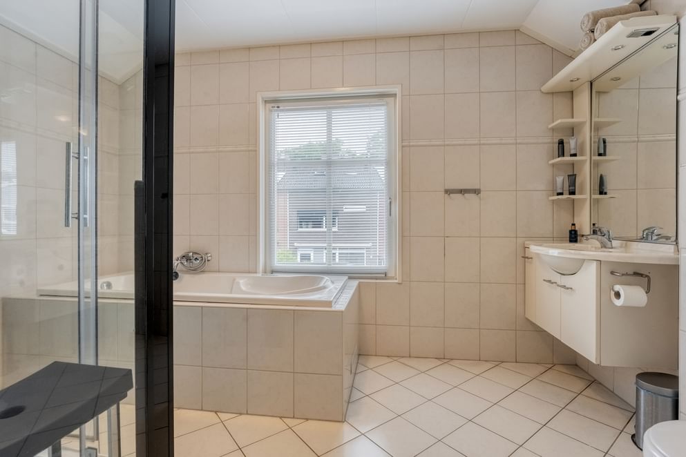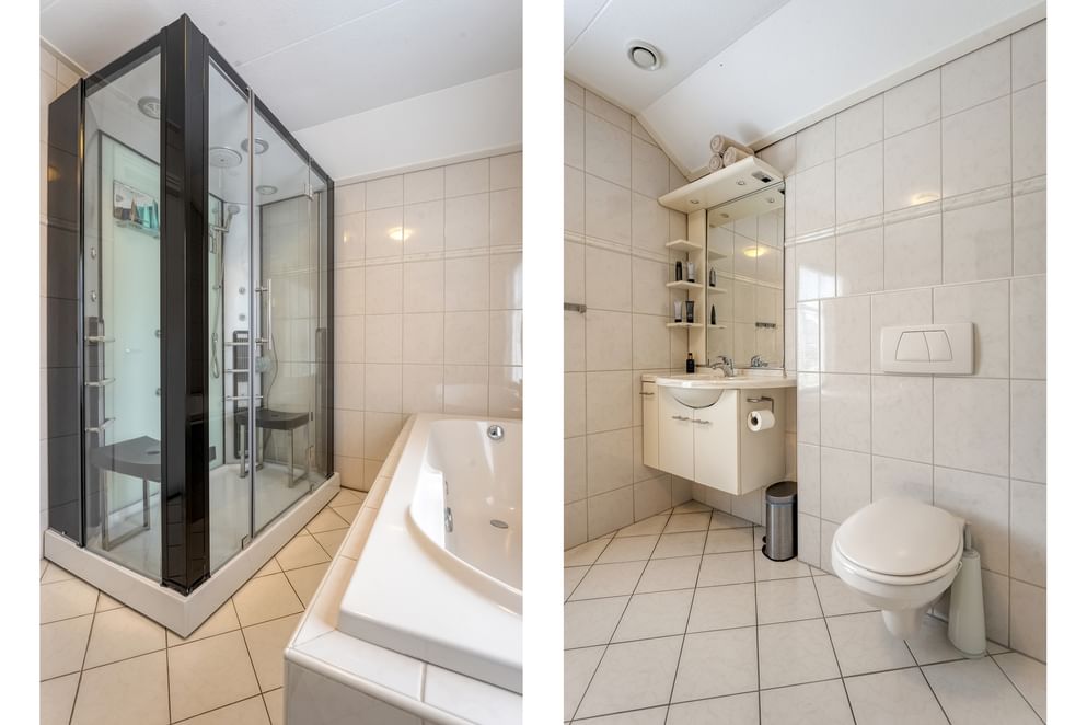 Vanaf de royale overloop heb je toegang tot vijf comfortabele slaapkamers en de badkamer. Twee van de slaapkamers zijn voorzien van een eigen wastafel. De badkamer is uitgerust met een douchecabine, whirlpool, toilet, wastafel en een wastafelmeubel.