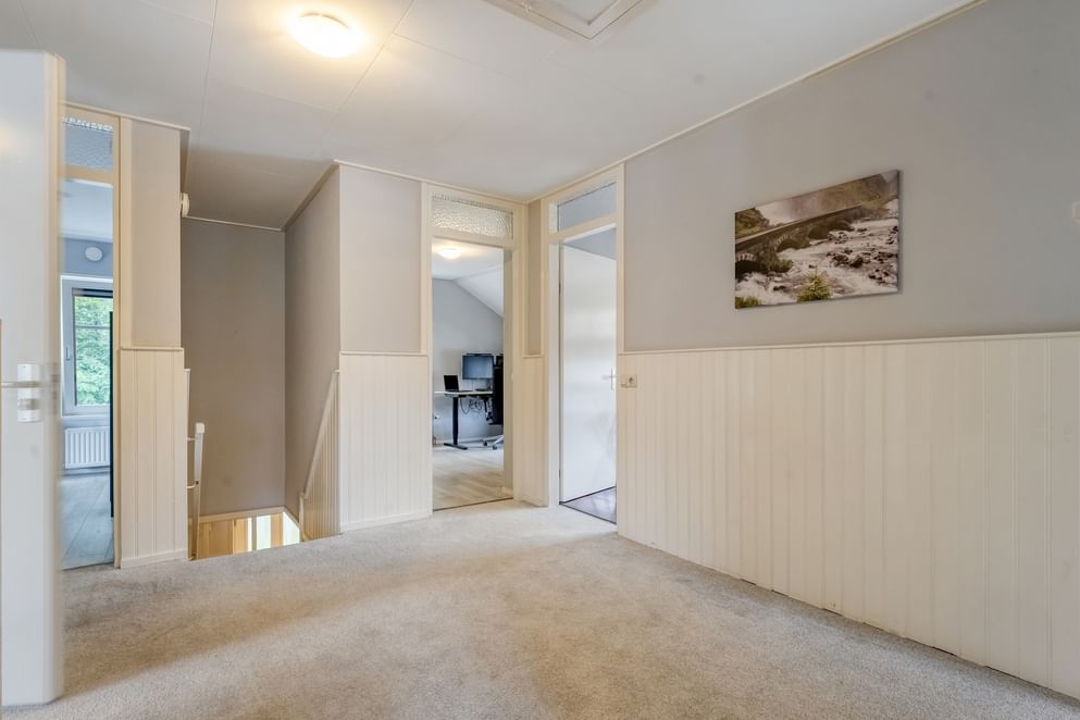 Op de eerste verdieping bevinden zich maar liefst vijf slaapkamers en een badkamer, wat deze woning perfect maakt voor grotere gezinnen of voor wie behoefte heeft aan extra werk- of hobbyruimte. In de tuin staat een vrijstaande, ruime schuur die momenteel wordt gebruikt als praktijkruimte en gastenverblijf. Aansluitend is een badkamer met inloopdouche, wastafel en toilet. Daarnaast bevindt zich een ruime schuur met veel opslagruimte. Dankzij de indeling en voorzieningen is de schuur veelzijdig inzetbaar.