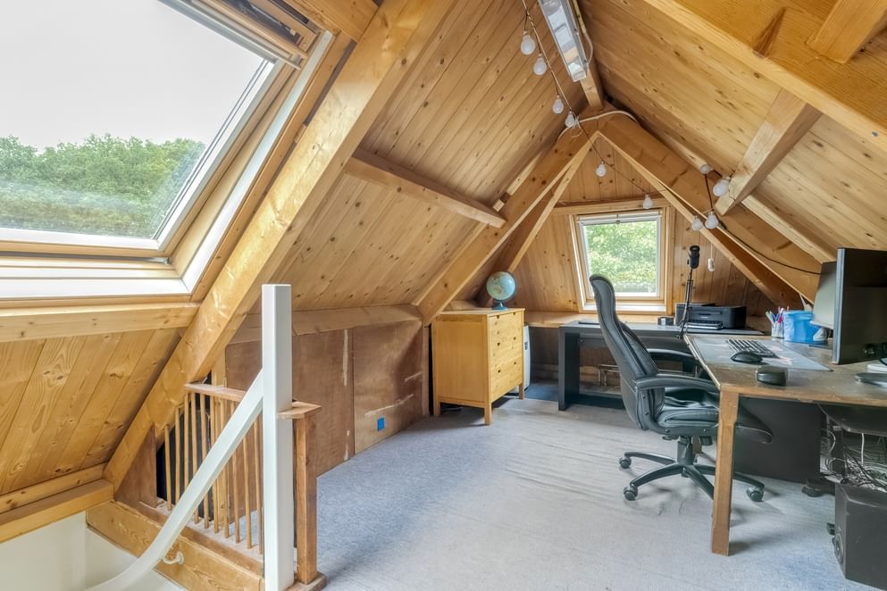 Met een vaste trap is de zolderruimte te bereiken. De zolderruimte is voorzien van drie dakramen en kan dienst doen als extra slaap- of werkkamer.