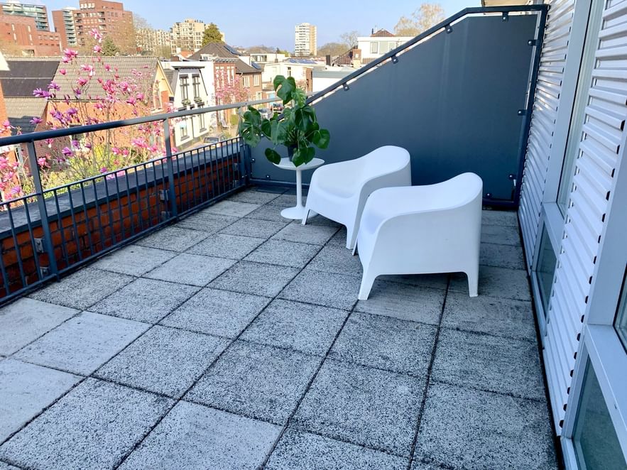 Via de vaste trap is de tweede verdieping te bereiken. Deze verdieping beschikt over een multifunctionele ruimte, die naar eigen wens kan worden ingericht als extra slaapkamer of als thuiswerkkantoor. Daarnaast is er een keukenblok aanwezig op deze verdieping. Vanuit deze verdieping heb je via een deur toegang tot het royale terras, waar je heerlijk kunt genieten van de ochtendzon.