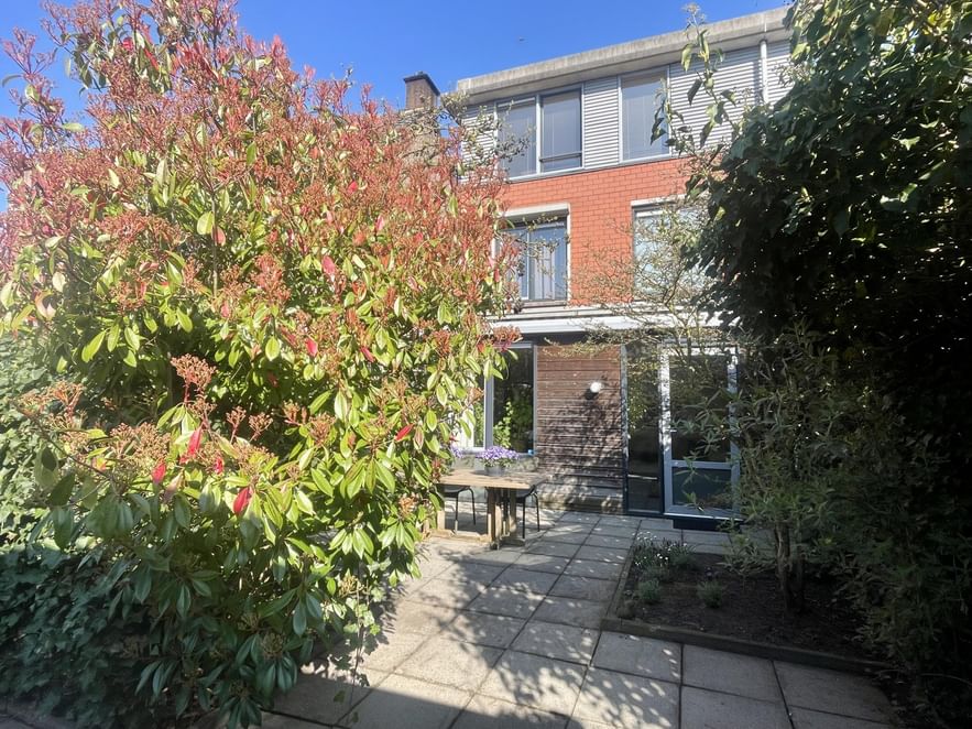 Aan de rand van van het centrum ligt deze fraaie twee-onder-een-kapwoning met royaal dakterras.