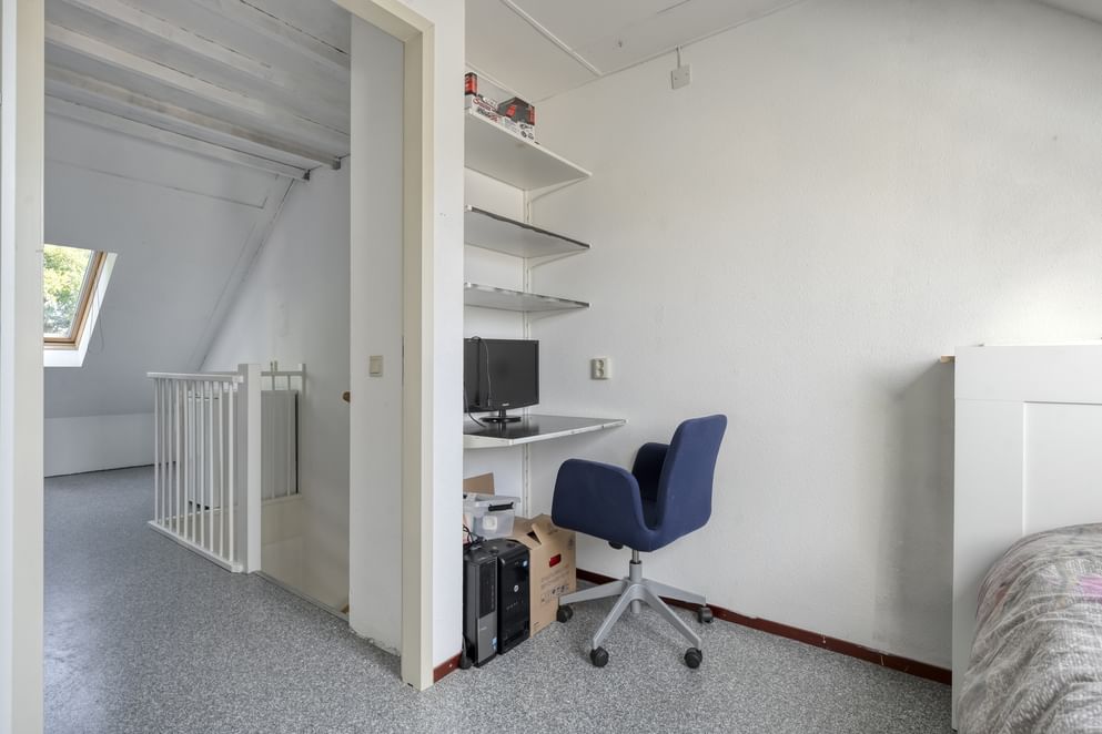 Met een vaste trap bereik je de overloop, die voldoende ruimte biedt voor het plaatsen van je wasmachine en droger. De CV-ketel en mechanische ventilatie box zijn hier tevens opgesteld. Aan de achterzijde tref je een extra (slaap)kamer, voorzien van een dakraam dat zorgt voor natuurlijk lichtinval. Daarnaast is er ook op deze verdieping een multifunctionele ruimte die naar wens kan worden ingericht, bijvoorbeeld als een hobbyruimte. Deze kamer geeft toegang tot het balkon aan de achterzijde van de woning. Vanaf de overloop is er tevens een praktische bergvliering bereikbaar.