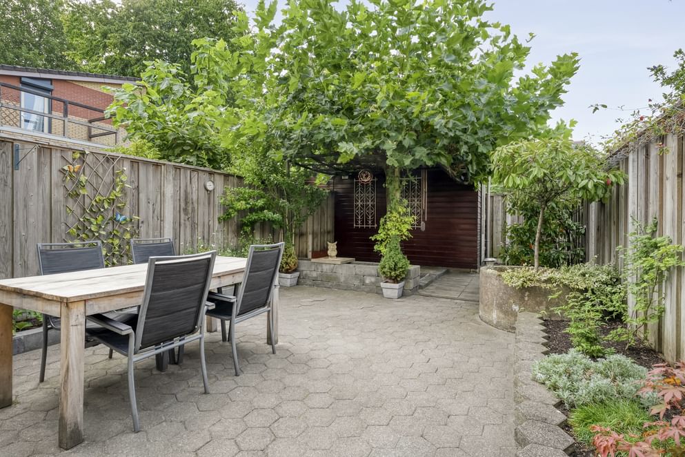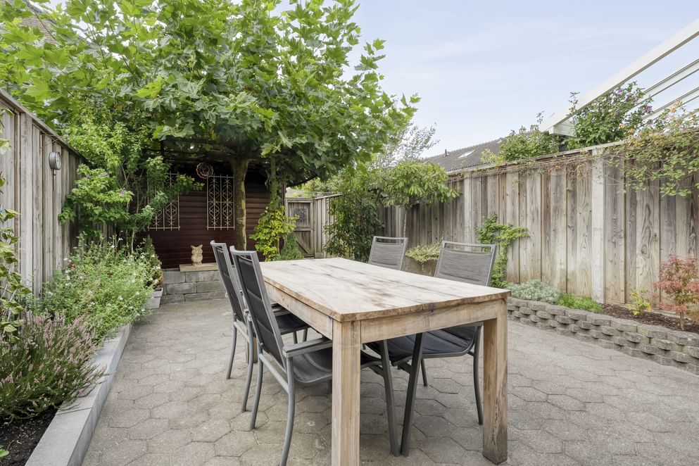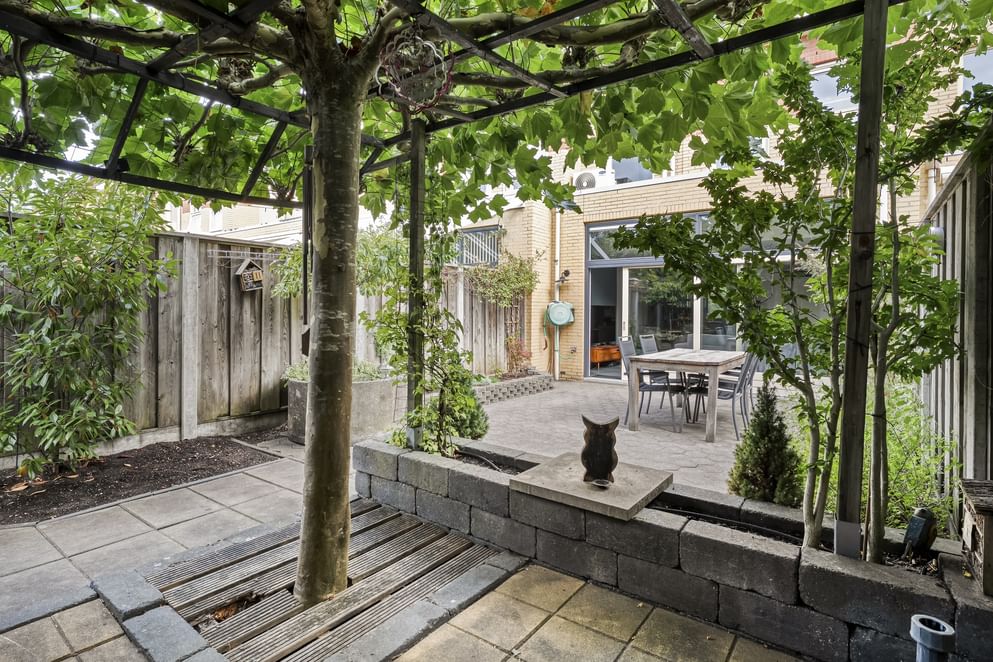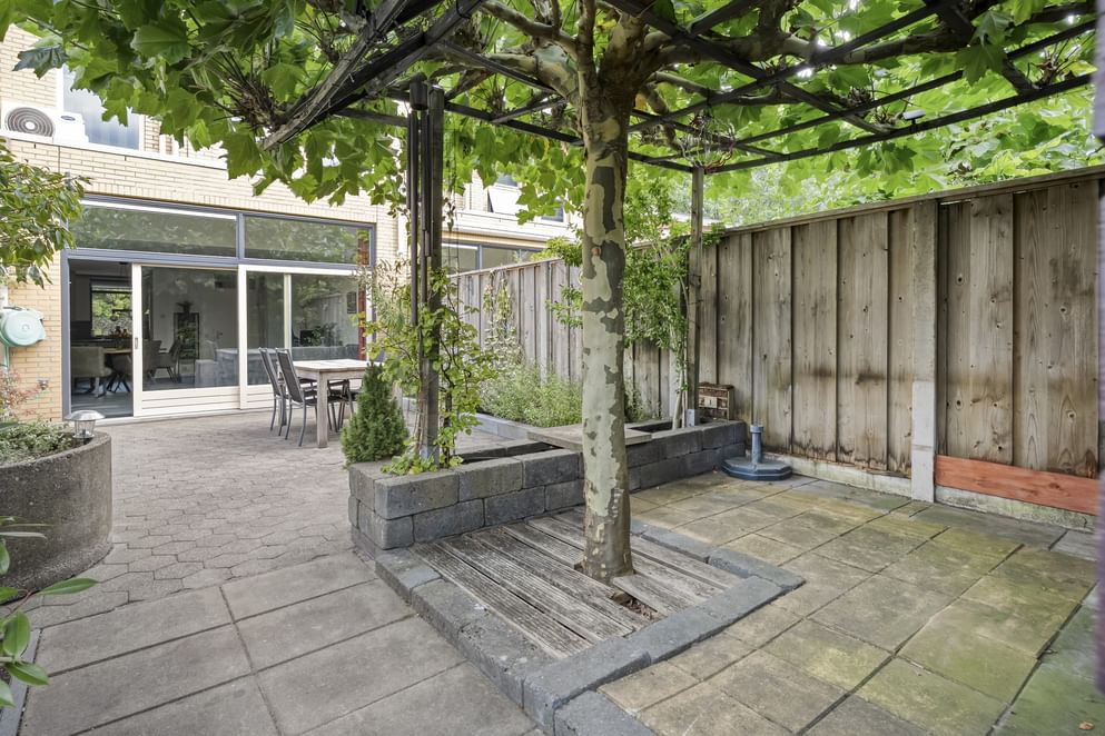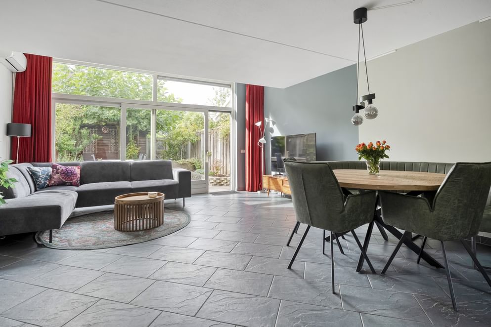 Bij binnenkomst betreed je een hal met trapopgang naar de eerste verdieping en een toiletruimte. De woonkamer en de keuken bevinden zich in één ruimte, wat zorgt voor een ruim en open karakter. De U-vormige keukenopstelling is gesitueerd aan de straatzijde uitgerust met een 5-pits gaskookplaat, koelkast, vaatwasser en combimagnetron. Aan de achterzijde van het woonhuis vindt je de woonkamer welke beschikt over een praktische provisiekast en airconditioning. De grote schuifpui zorgt voor veel lichtinval en brengt je vanuit de woonkamer naar de betegelde tuin, die eenvoudig in onderhoud is en genoeg ruimte biedt voor een gezellige zithoek. Aan de zijkant van de tuin is onderhoudsvriendelijk groen te vinden. Achterin de tuin bevindt zich een praktische berging en een achterom.