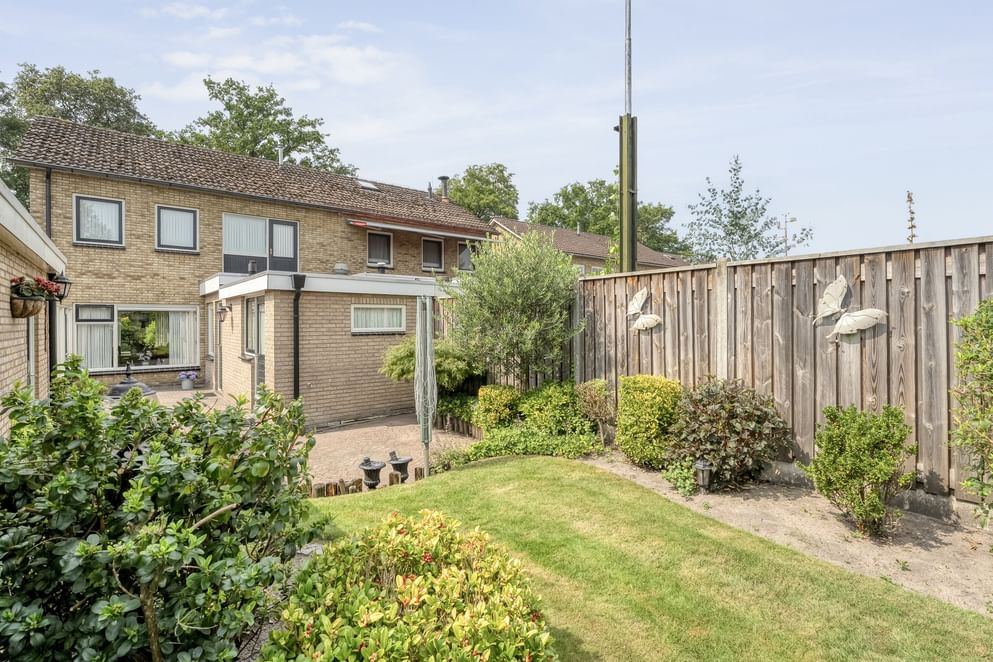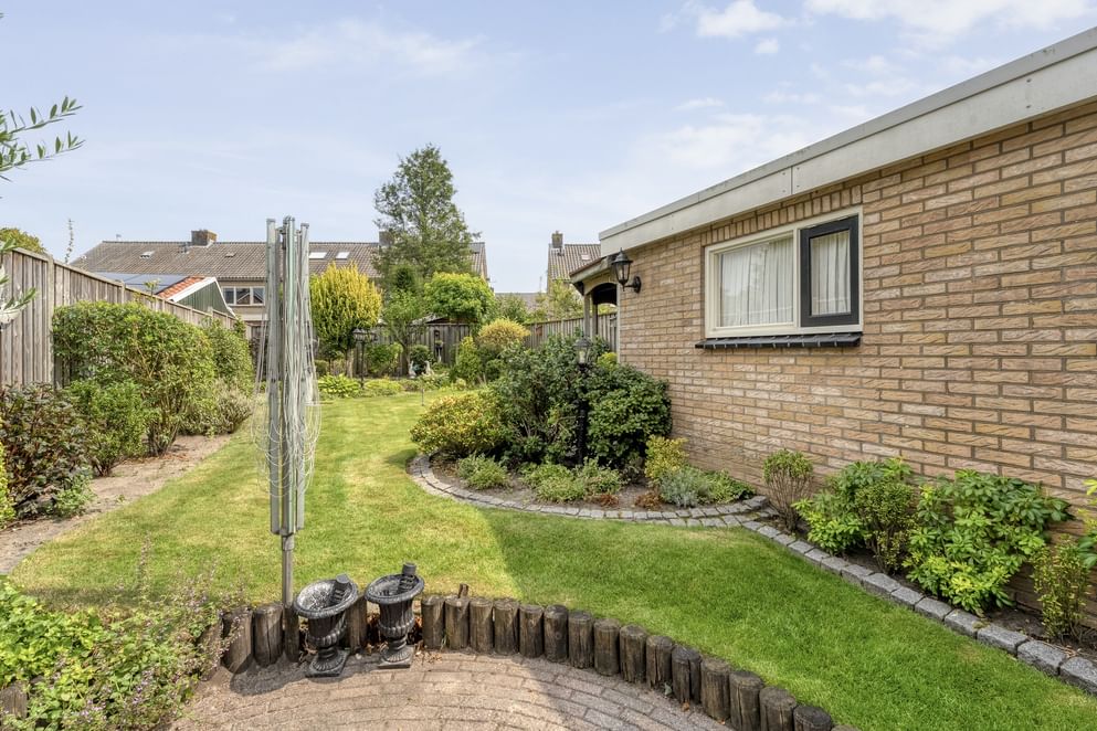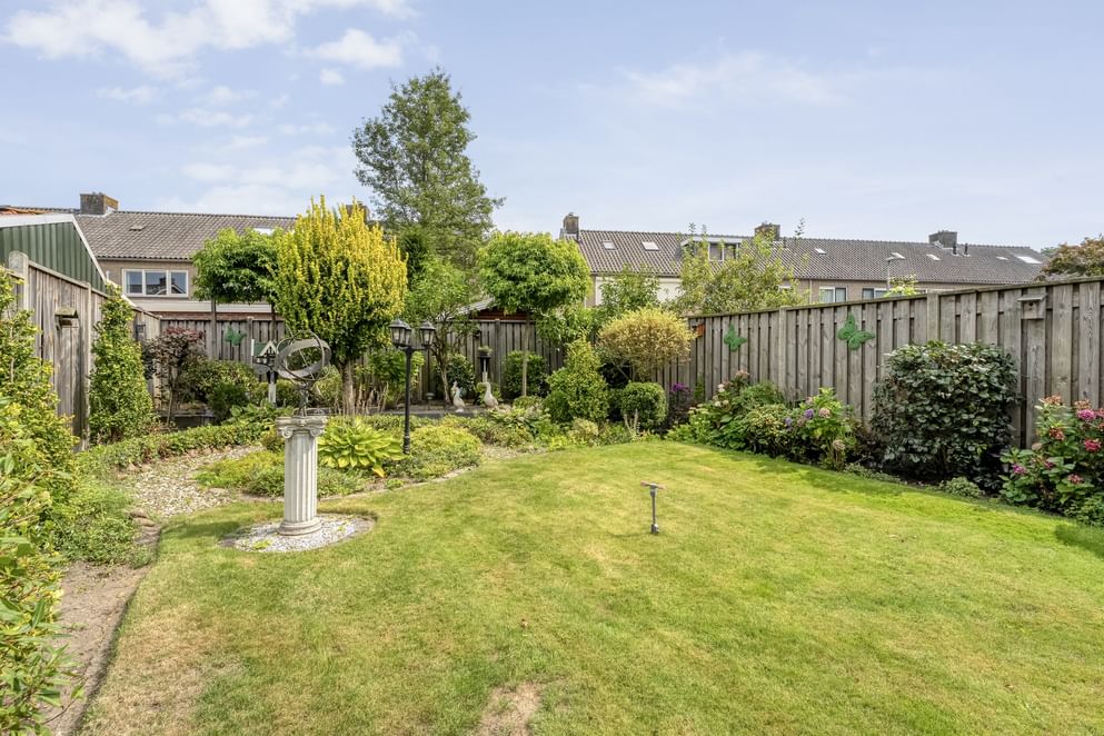 Dit is echt een verlengstuk van je woonplezier. In de ruime, diepe en netjes onderhouden tuin kun je tot in de late uurtjes genieten van een gezellige BBQ met vrienden of gewoon tot rust komen met een goed boek. De tuin is voorzien van een vrijstaande, ruime stenen garage en een aangebouwde overkapping, waardoor je altijd een fijne plek hebt om beschut buiten te zitten.