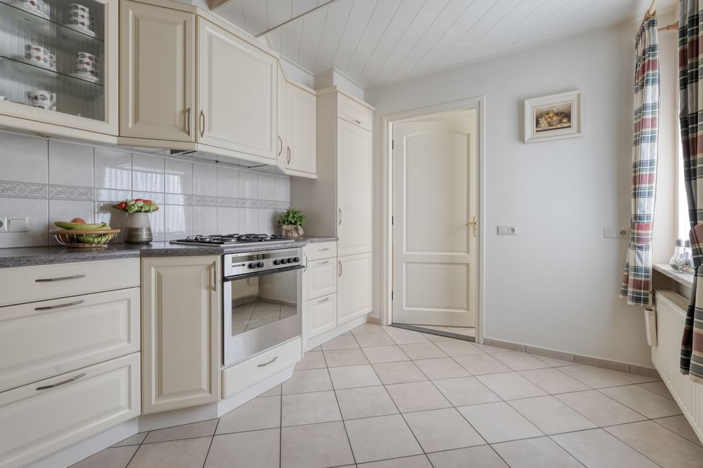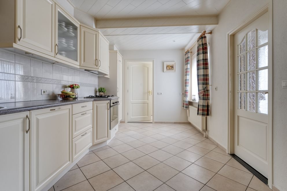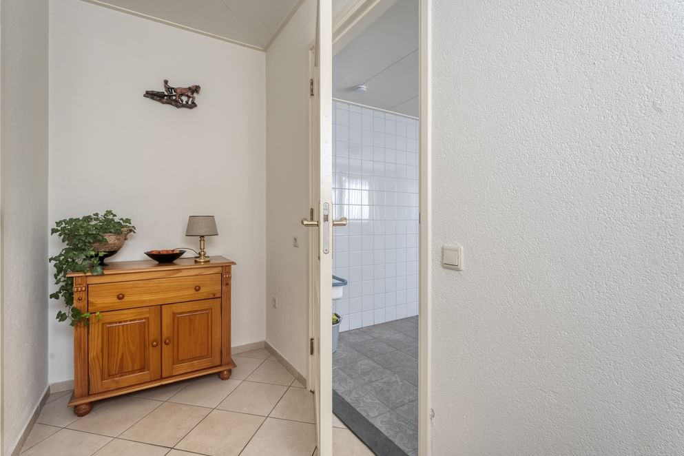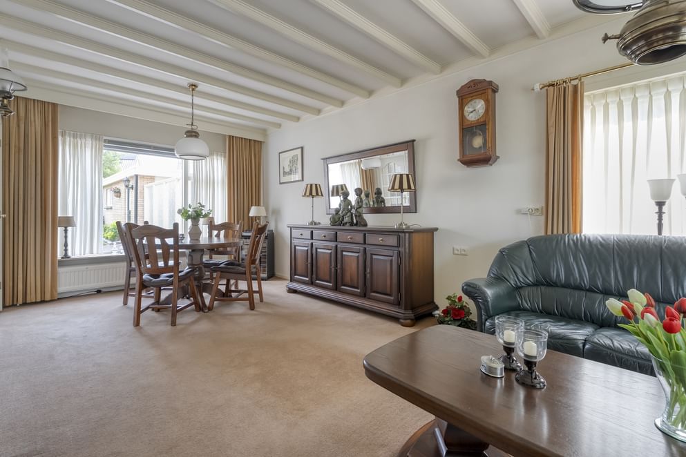 Gelegen aan de rand van het dorp Geesteren, staat een woning die je direct verrast. Waar je aan de voorzijde geniet van het groen zonder directe overburen, ontdek je aan de achterzijde een diepe tuin met volop privacy en zon. Het is een plek waar je heerlijk buiten kunt zitten onder de overkapping en waar de vrijstaande garage en royale oprit het woongemak compleet maken. Binnen stap je een woonkamer binnen die voldoende ruimte biedt voor een gezellige zithoek én een eettafel. De aangrenzende keuken is royaal van formaat en uitgerust met diverse inbouwapparaten. Vanuit hier loop je door naar het achterportaal, dat toegang geeft tot een ruime bijkeuken met aansluitingen voor wasmachine en droger. Ook vanuit deze ruimte bereik je de diepe achtertuin.