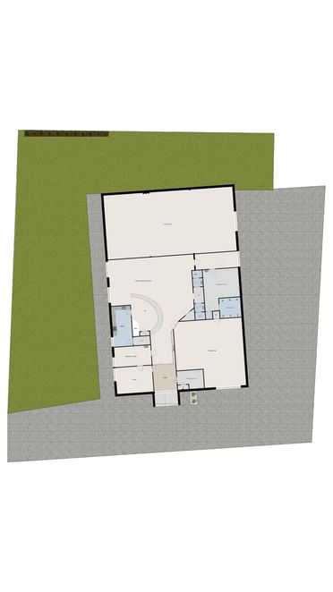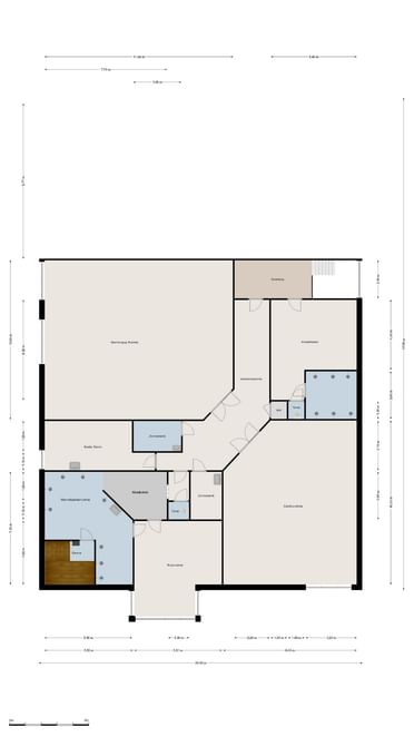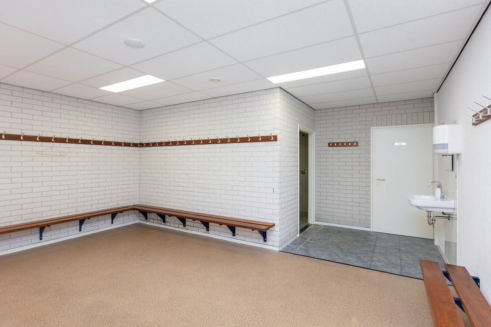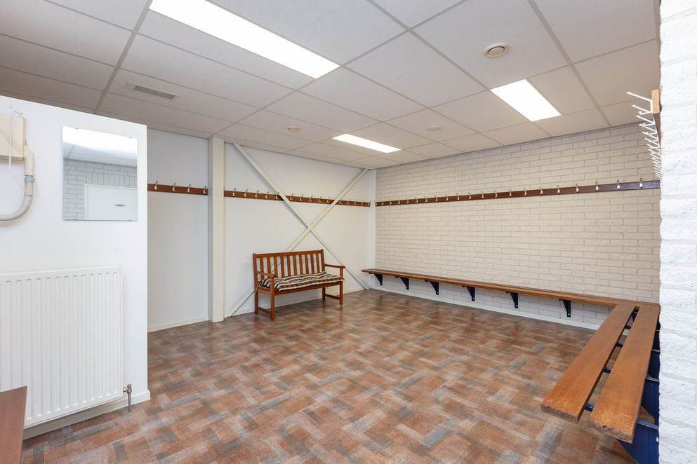 - Begane grond (totale oppervlakte: ca. 387 m²): Entree, kantoor met wachtkamer, technische ruimte v.v. meterkast, trainingsruimte, ontvangstruimte/kantine met balie en openslaande deuren naar buiten, keuken v.v. koelcel, sanitair (1x dames, 1x heren), kleedkamer en doucheruimte.