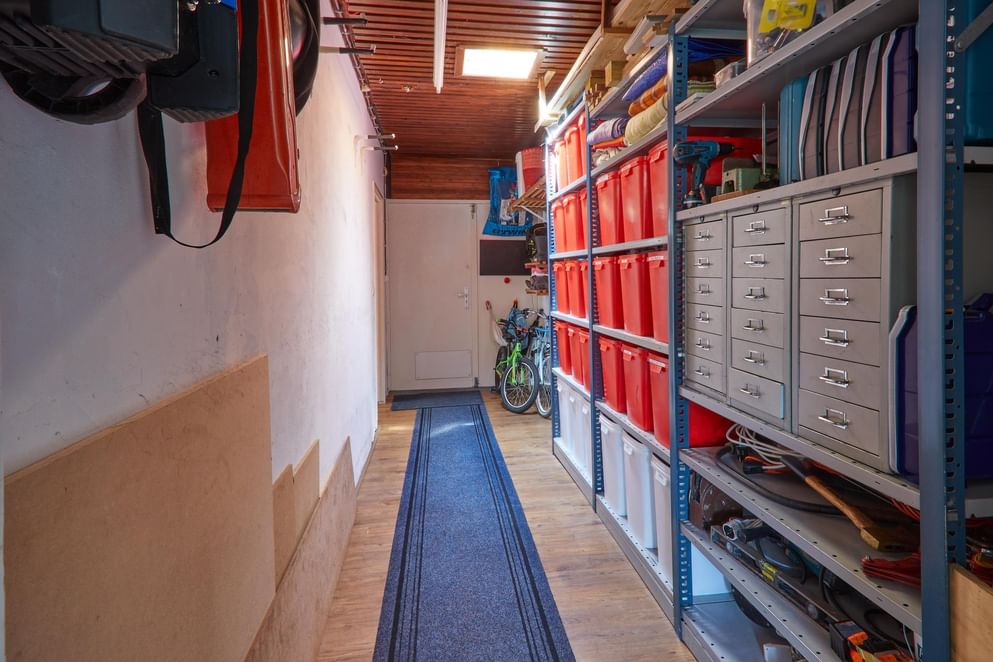 Tot slot beschikt de woning nog over een ruime bijkeuken en berging. Waardoor er veel extra bergruimte is, ideaal! In de berging staat een volledig keukenblok met spoelbak en kraan en er is verwarming aanwezig. Verder staat er nog een handige werkbank.