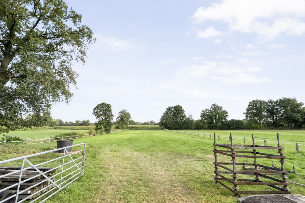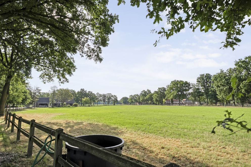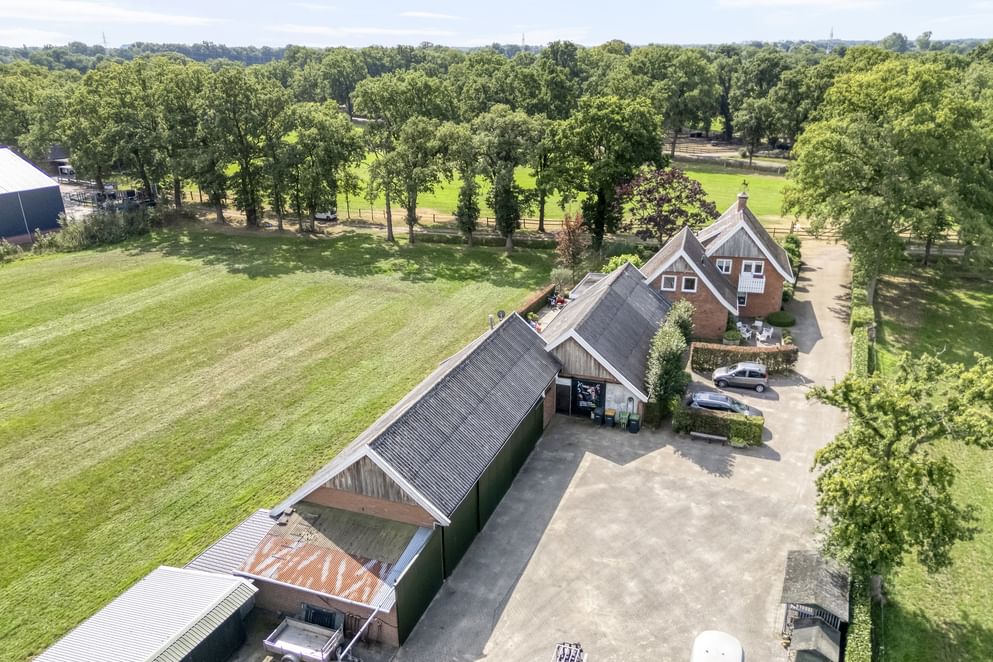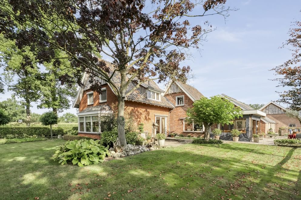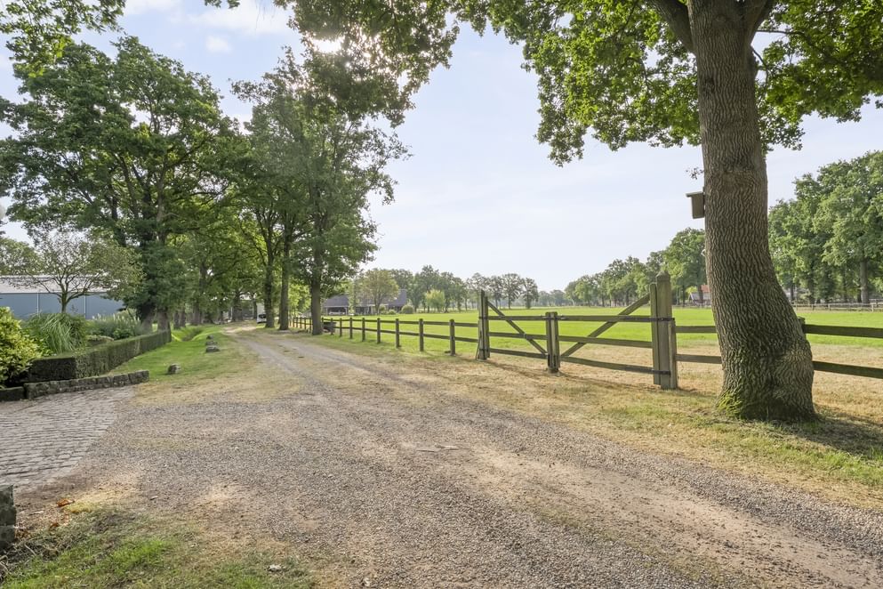 De woning is gebouwd in 1955 en door de jaren heen zorgvuldig onderhouden en gemoderniseerd. De lichte woonkamer van kijkt uit over de strakke tuin en het achterliggende landschap. Dankzij de schuifpui geniet je hier het hele jaar door van de verbinding tussen binnen en buiten. Aansluitend vind je de royale woonkeuken, waar ruimte is voor een grote eettafel en waar het gezin samen kan komen. Wat deze plek bijzonder maakt, is de ligging: aan een rustige weg, buiten de bebouwde kom en met volledig vrij uitzicht. Rondom de woning ligt een grote tuin met diverse terrassen, een gazon en fraaie beplanting. Op het erf bevindt zich bovendien een paardenstal met maar liefst acht paardenboxen. Ook buiten zijn de benodigde faciliteiten voor de paardenliefhebbers: een buitenbak en een ruim perceel grasland. Is het huiskavel niet groot genoeg? Aan de overzijde ligt een perceel van ruim 1,6 hectare volledig in hout omheind grasland wat optioneel bij te kopen is.
