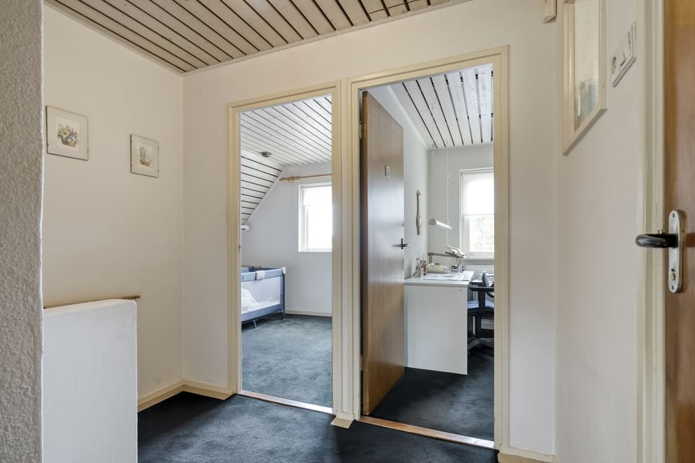 Via de overloop is zijn twee slaapkamers, een werkkamer en een badkamer te bereiken. De slaapkamers zijn ruim van opzet en bieden veel lichtinval en uitzicht over het groen. De badkamer is uitgerust met een ligbad, douche en dubbele wastafel en beschikt over vloerverwarming. Via de werkkamer zijn twee andere slaapkamers te bereiken.