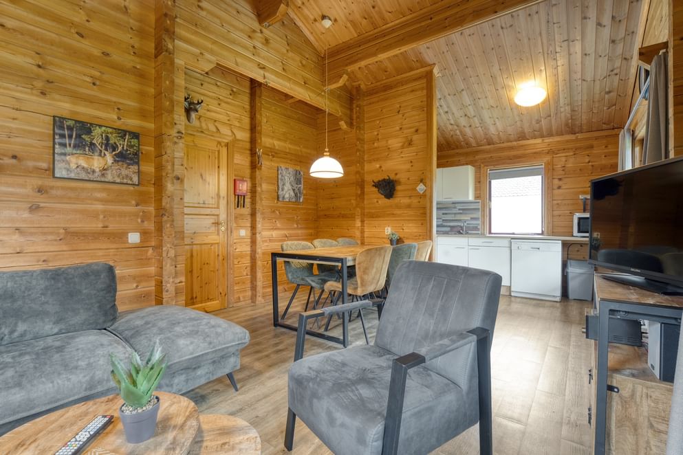 Op zoek naar een sfeervol vakantiehuisje met Finse uitstraling in een groene omgeving? Deze vrijstaande zespersoons bungalow op vakantiepark ’t Hooge Holt in Gramsbergen combineert comfort, sfeer en mogelijkheden.