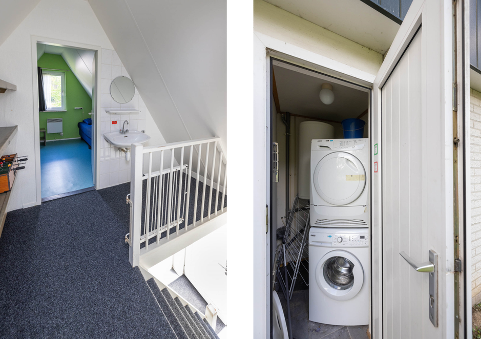 Via de entree aan de zijkant van de recreatiewoning kom je in de hal welke toegang biedt tot de woonkamer, keuken, badkamer, separate toiletruimte, slaapkamer en trapopgang. Vanuit de entree betreden we de open keuken welke is voorzien van een keramische kookplaat met afzuigkap, spoelbak, vaatwasser, combioven, koelkast en de keukenlades beschikken over softclose. De woonkamer beschikt over een open haard, zodat je ook in de koude wintermaanden de recreatiewoning heerlijk kunt verwarmen. Vanuit de woonkamer lopen we middels de openslaande deuren naar buiten het op het zuiden gelegen terras op. Op de begane grond is tevens een slaapkamer voorzien van een vaste kast gesitueerd. De badkamer is voorzien van een ligbad met douche en een wastafelmeubel. De gehele begane grond is voorzien van een plavuizen vloer. De inpandige meterkast en berging/technische ruimte zijn buitenom aan de achterzijde te bereiken. De technische ruimte beschikt over de opstelplaats voor witgoed en de boiler voor de warmtevoorziening.