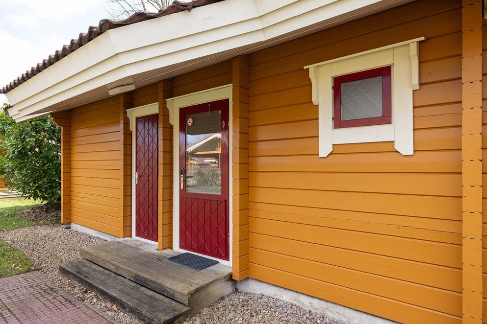 Bij binnenkomst via de entree bevindt zich een bergruimte met de cv-opstelling en de wasmachine-/drogeropstelling. Vanuit de entree heb je ook toegang tot het toilet met wandcloset en fontein, evenals de badkamer met bad douche combinatie en de wastafel. Naast de entree, via de buitenzijde, heb je toegang tot de meterkast. De lichte woonkamer beschikt over een comfortabele zit- en eethoek. De aangrenzende open keuken is uitgerust met onder andere een keramische kookplaat met afzuigkap (filter), combi-oven, vaatwasser en koelkast. De bungalow beschikt over twee slaapkamers, beide ingericht met twee eenpersoonsbedden en kastruimte. Via de woonkamer bereik je middels openslaande tuindeuren het royale, overdekte terras, waar je kunt genieten van het buitenleven.