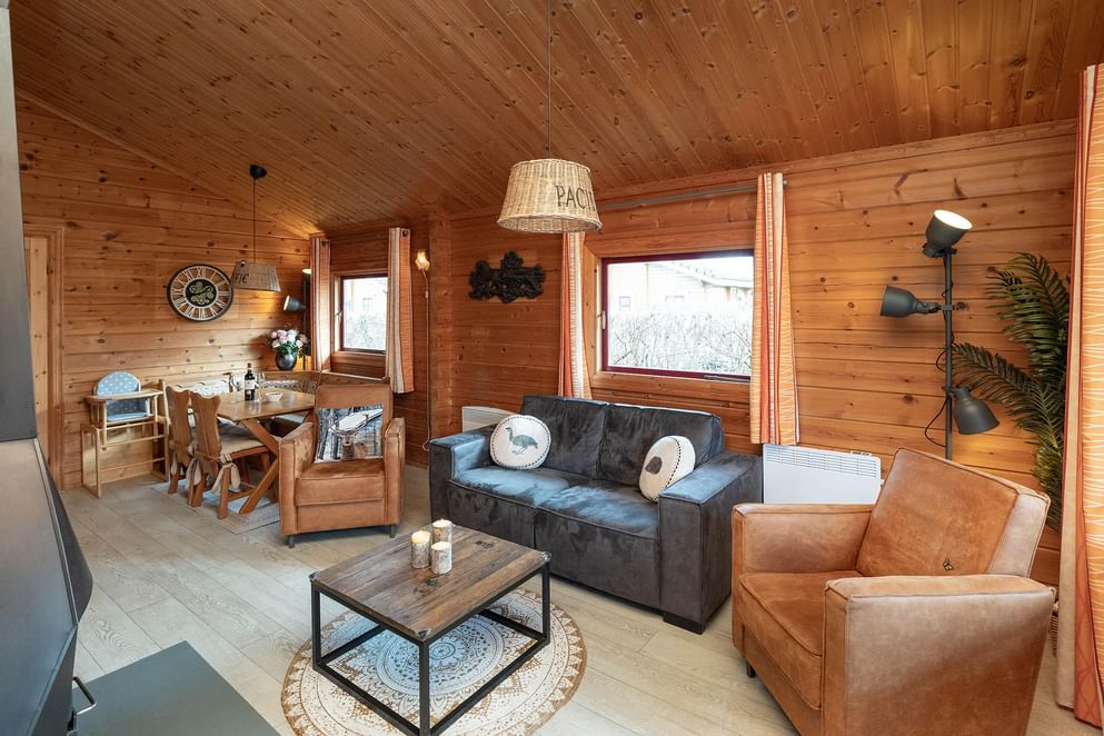 Ben jij op zoek naar een sfeervolle recreatiewoning in een prachtige, groene omgeving? Deze vrijstaande Finse bungalow biedt alles voor een ontspannen verblijf op vakantiepark 't Hooge Holt in Gramsbergen.