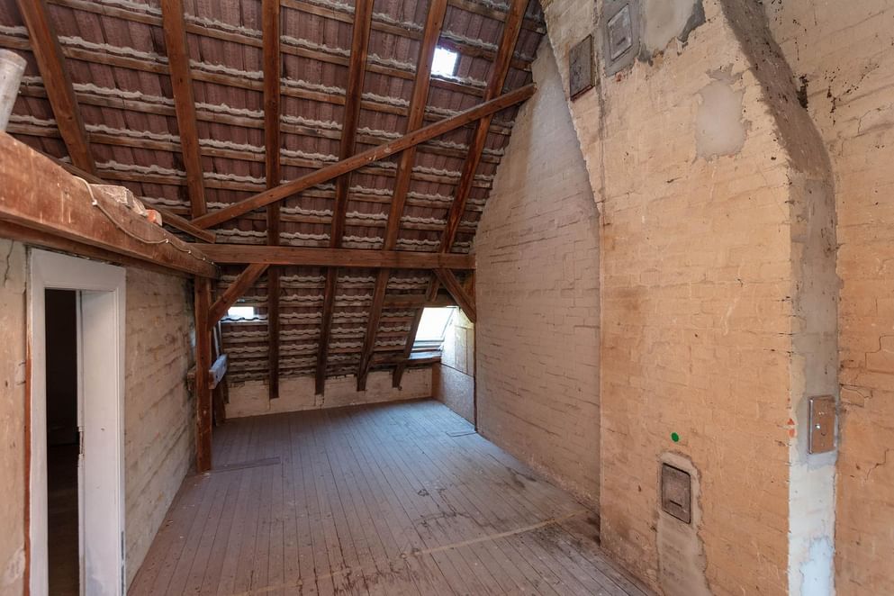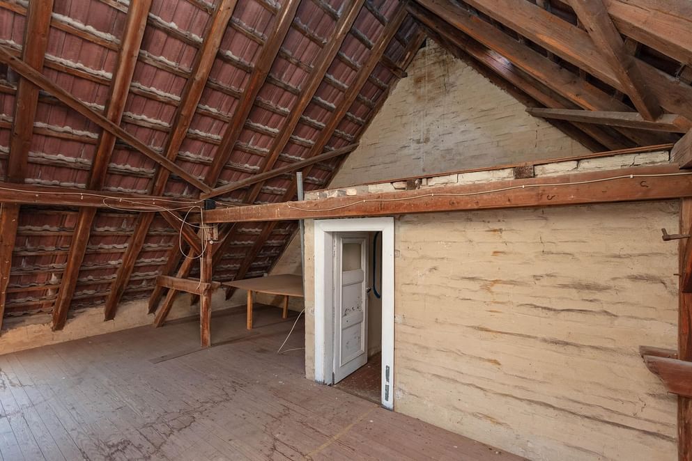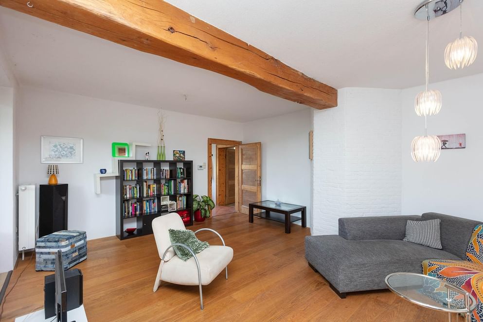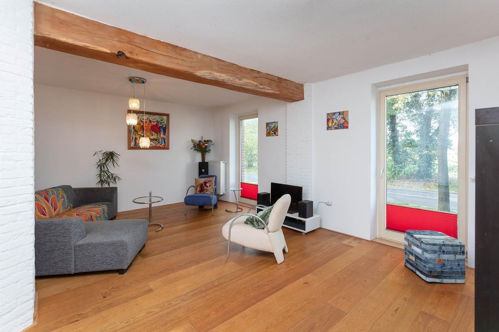 - Imposant gebintwerk in de woonkamer en -keuken