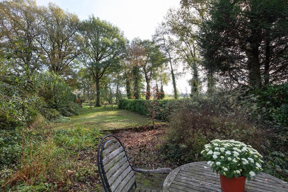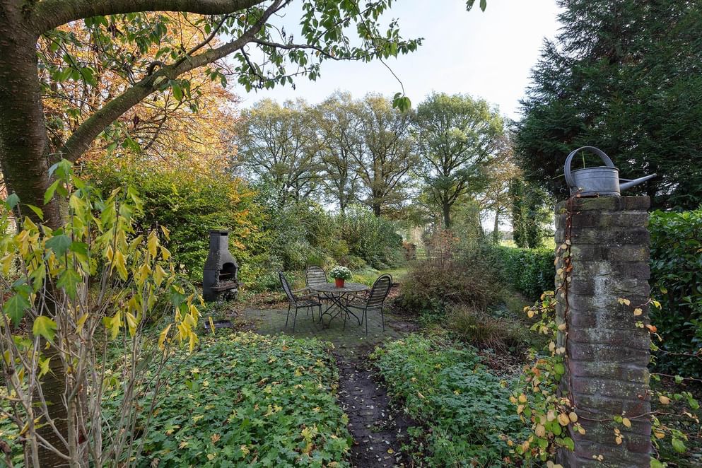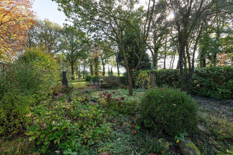 Het woonhuis is gelegen op een perceel van maar liefst 970 m², deze grond zit voornamelijk aan de achterzijde waar een langgerekte tuin richting de weilanden het perceel beslaat. Het uitzicht tot in de groene verte is geweldig te noemen!