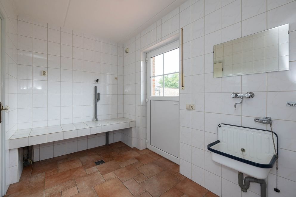 Bij binnenkomst word je verwelkomd in een ruime hal die toegang biedt tot de meterkast, een vaste trap naar de eerste verdieping, een toilet met fontein en de verschillende leefruimtes. De ruime L-vormige woonkamer is voorzien van veel natuurlijk daglicht, openslaande tuindeuren en biedt je toegang tot de keuken. De keuken beschikt over een keukenblok in L-opstelling met diverse inbouwapparatuur, waaronder een RVS-spoelbak, oven, 4-zone inductie kookplaat, vaatwasser, afzuigkap en een koelkast. De praktische bijkeuken is voorzien van een uitstortgootsteen, witgoedaansluiting op hoogte en biedt extra opbergruimte. Vanuit de hal is ook toegankelijk de garage en de slaapkamer. De ruime slaapkamer beschikt tevens over openslaande deuren naar de tuin en biedt toegang tot de aangrenzende badkamer. Deze is voorzien van een ligbad, dubbele wastafelmeubel, een ruime inloopdouche en een toilet.