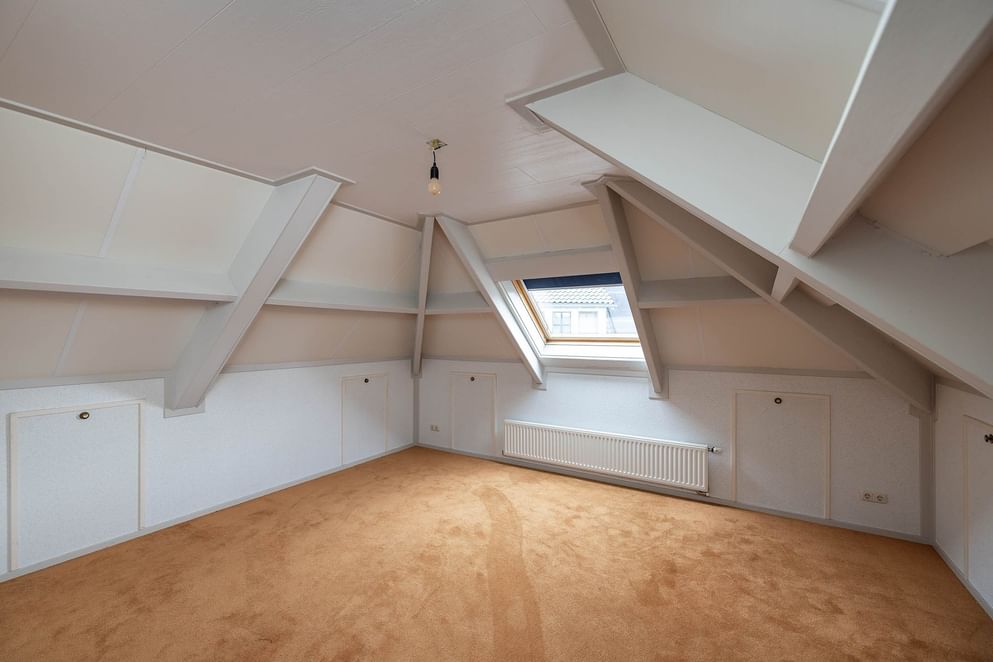Deze woning, gelegen op een perceel van circa 533 m², biedt een alles voor comfortabel wonen. Dankzij de slaap- en badkamer op de begane grond is de woning geschikt voor diverse levensfasen. De ruime woonkamer, met grote raampartijen, zorgt voor veel natuurlijk daglicht en een aangename sfeer. Daarnaast beschikt de woning over een praktische bijkeuken en een zeer ruime garage, ideaal voor het stallen van zeker twee auto's, het opbergen van tuingereedschap of als hobbyruimte. Op de bovenliggende etage bevinden zich drie zeer ruime slaap-/hobbykamers, allen voorzien van een dakraam. Tevens is op deze woonlaag een tweede badkamer aanwezig.