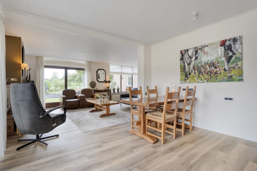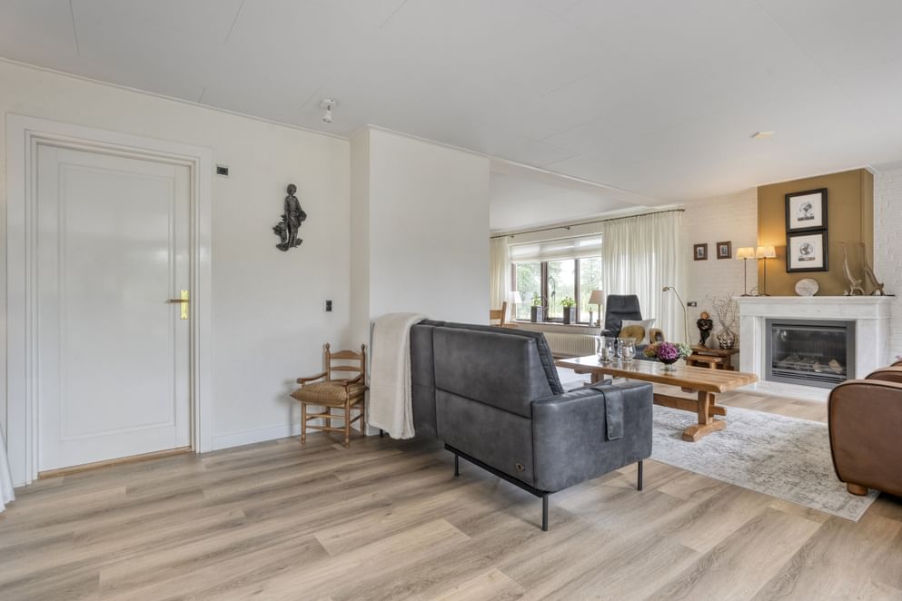 Het perceel van maar liefst 4.380 m² biedt alles wat je zoekt als je graag buiten woont. De woning beschikt over een royale woonkamer met een sfeervolle marmeren gashaard, een ruime woonkeuken en een extra kamer die uitstekend dienst kan doen als kantoor of hobbyruimte. Op de eerste verdieping bevinden zich vier slaapkamers en twee badkamers, waarvan één momenteel in gebruik is als opstelplaats voor het witgoed.