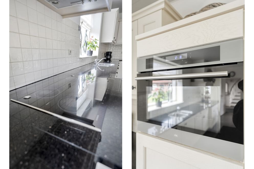 Je betreedt de woning via een ruime entree met trapopgang, de meterkast en een handige provisiekast. De sfeervolle woonkamer met fraai uitzicht op zowel de straat als de tuin is royaal van opzet en biedt ruimte aan meerdere zitgedeeltes. Blikvanger is de prachtige gashaard met marmeren schouw die zorgt voor warmte en sfeer. Aan de achterzijde bevindt zich de zeer ruime woonkeuken met een hardstenen werkblad, veel apparatuur en volop ruimte voor een grote eethoek. Aansluitend bevindt zich het achter portaal met een spiltrap naar de eerste verdieping en een toilet. Grenzend aan de keuken bevindt zich ook nog een aparte kamer die uitstekend dienst kan doen als kantoor of speelkamer.