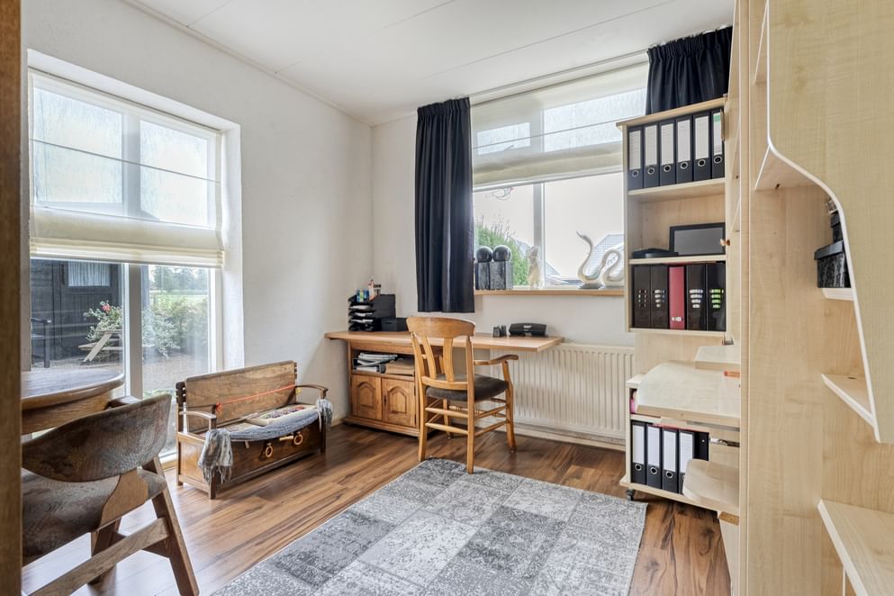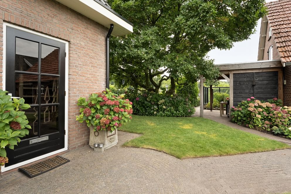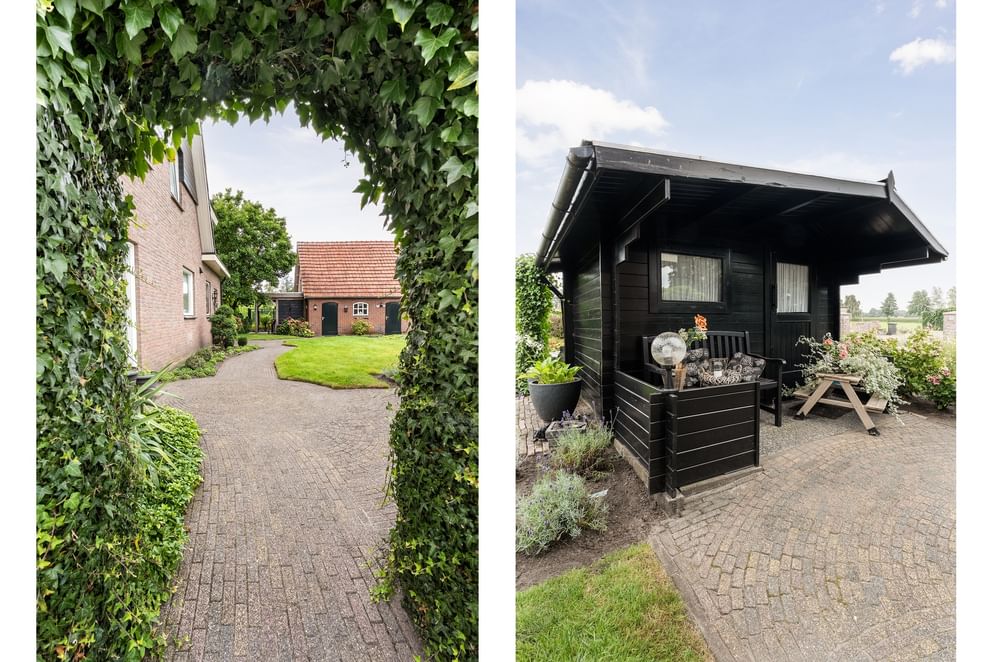 In de karakteristieke vrijstaande schuur van maar liefst 90 m² bevindt zich onder andere een kantoor/atelier met een keukenblok en gaskachel. Tevens vind je hier een ruime werkplaats en een fietsenstalling, en is er op de vliering een grote ruimte voor extra opslag. Aan de achterzijde bevindt zich een diepe carport, ideaal voor het parkeren van een auto en het stallen van een aanhanger. De schuur heeft aan de tuinzijde een prachtig overdekt terras, waar je in alle rust kunt genieten van het buitenleven. Wat deze plek uniek maakt is de prachtige, zeer goed onderhouden tuin en moestuin, met daarnaast een stuk weidegrond van maar liefst ca. 2.800 m². Dierenliefhebbers komen hiermee helemaal aan hun trekken. Deze ruimte biedt namelijk de mogelijkheid tot het houden van paarden of andere kleindieren. Dankzij de ligging nabij het kanaal Almelo-Nordhorn is de omgeving rijk aan groen, rust en wandelmogelijkheden. Een perfecte uitvalsbasis voor natuurliefhebbers en rustzoekers.