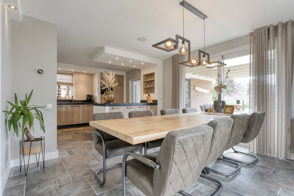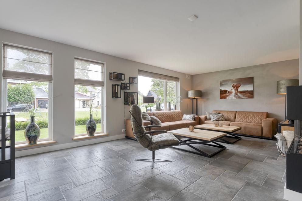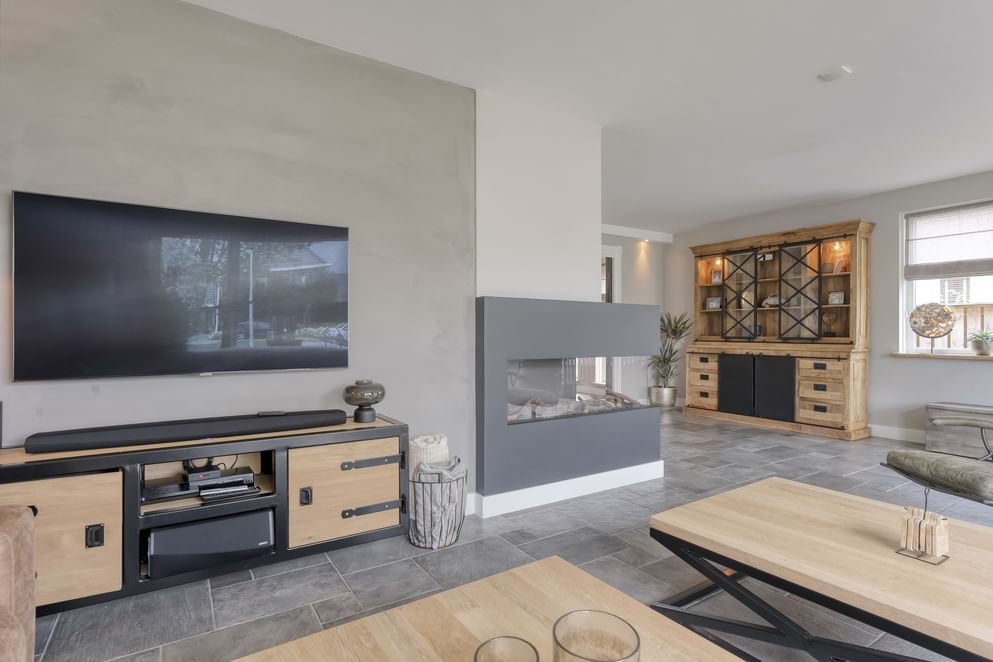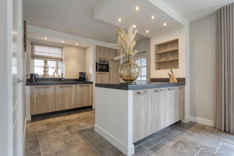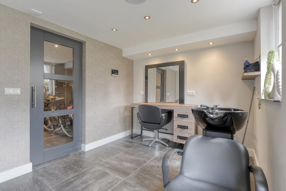 Dit object is de afgelopen jaren met veel zorg en aandacht volledig gemoderniseerd naar de huidige maatstaven van luxe en royaal wonen. In 2021 is er een compleet nieuwe woonkeuken geplaatst, voorzien van alle gemakken. De keuken staat in directe verbinding met de ruime, lichte woonkamer, gescheiden door kamer-en-suite deuren. De woonkamer is een fijne leefruimte met veel lichtinval en een sfeervolle, grote gashaard als centraal punt. De voormalige garage is slim verdeeld in een berging én een keurig afgewerkte praktijkruimte perfect voor een nagelstudio, salon of kantoor aan huis de mogelijkheden zijn hier aanwezig.