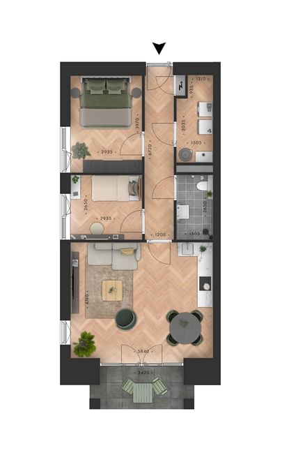 - 2 slaapkamers;