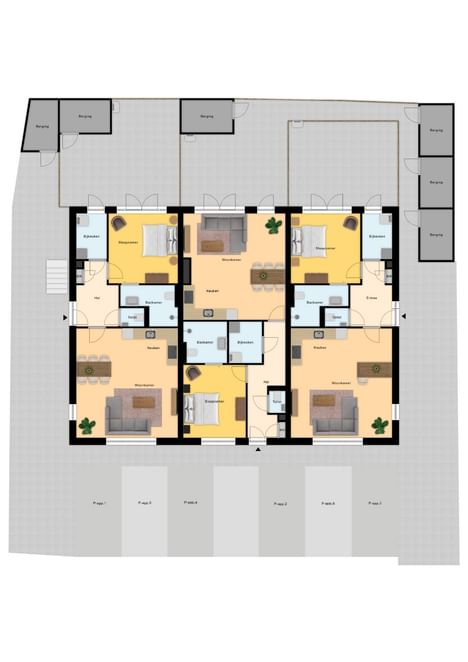 - De appartementen zijn v.v. 1 slaapkamer en 1 bijkeuken;