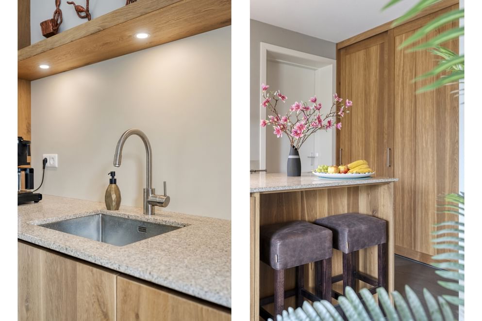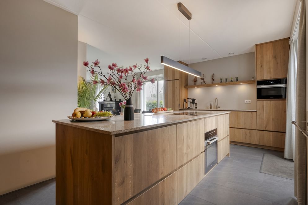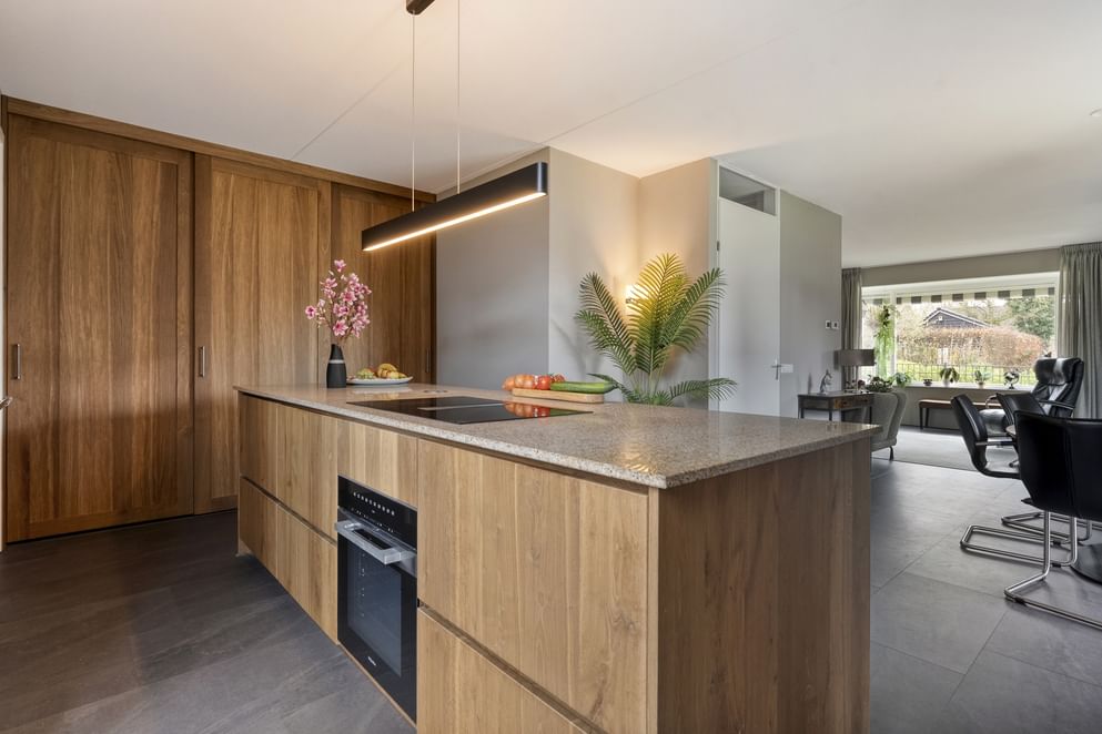 - Hoogwaardige en fraaie op maat gemaakte woonkeuken v.v. granieten werkblad en Miele inbouwapparatuur