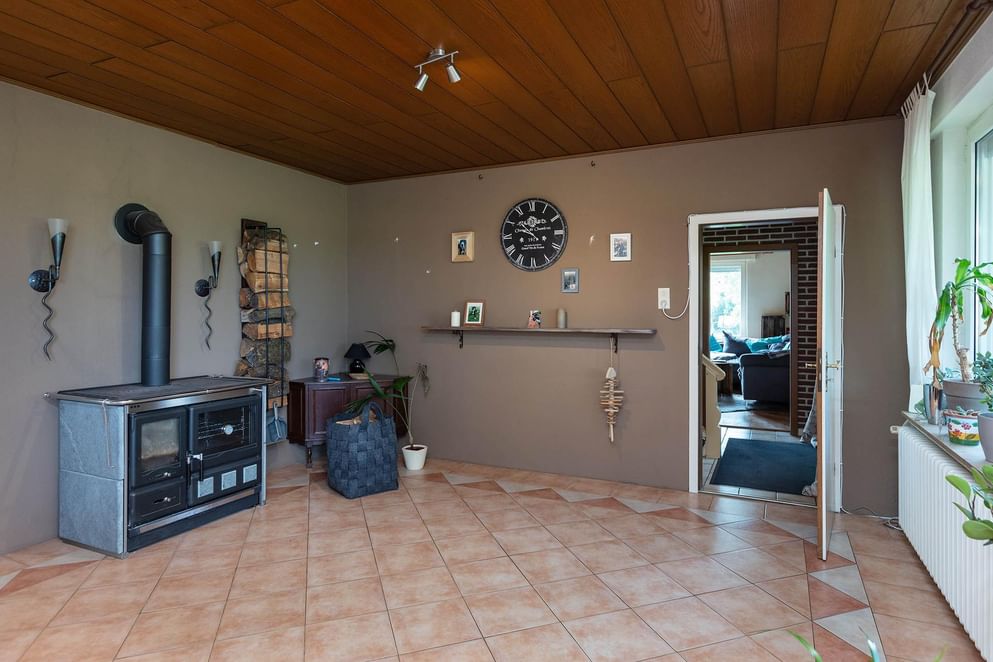 Via de hoofdentree van de woning betreden wij het geheel. Aan de rechterzijde van de hal bevindt zich de royale woonkamer met houtkachel. Aan de linker zijde van de hal bevindt zich de zeer riante woonkeuken. De nette inbouwkeuken is voorzien van diverse inbouwapparatuur en in ca. 2007 geplaatst. Naast een ruime eettafel is er zelfs nog voldoende ruimte voor een zithoek. Direct aan de woonkeuken is de slaapkamer gelegen. De slaapkamer is aan de achterzijde van de woning gesitueerd en voorzien van rolluiken. Middels een gang welke vanuit de keuken toegankelijk is bereikt men de badkamer. Deze eenvoudige badkamer, met opstelplaats voor uw wasmachine, is voorzien van een douchehoek, toilet en wastafel. Eveneens bevindt zich aan deze gang een kleine bijkeuken en vanuit deze bijkeuken loopt u door naar de aangrenzende voormalige deel.
